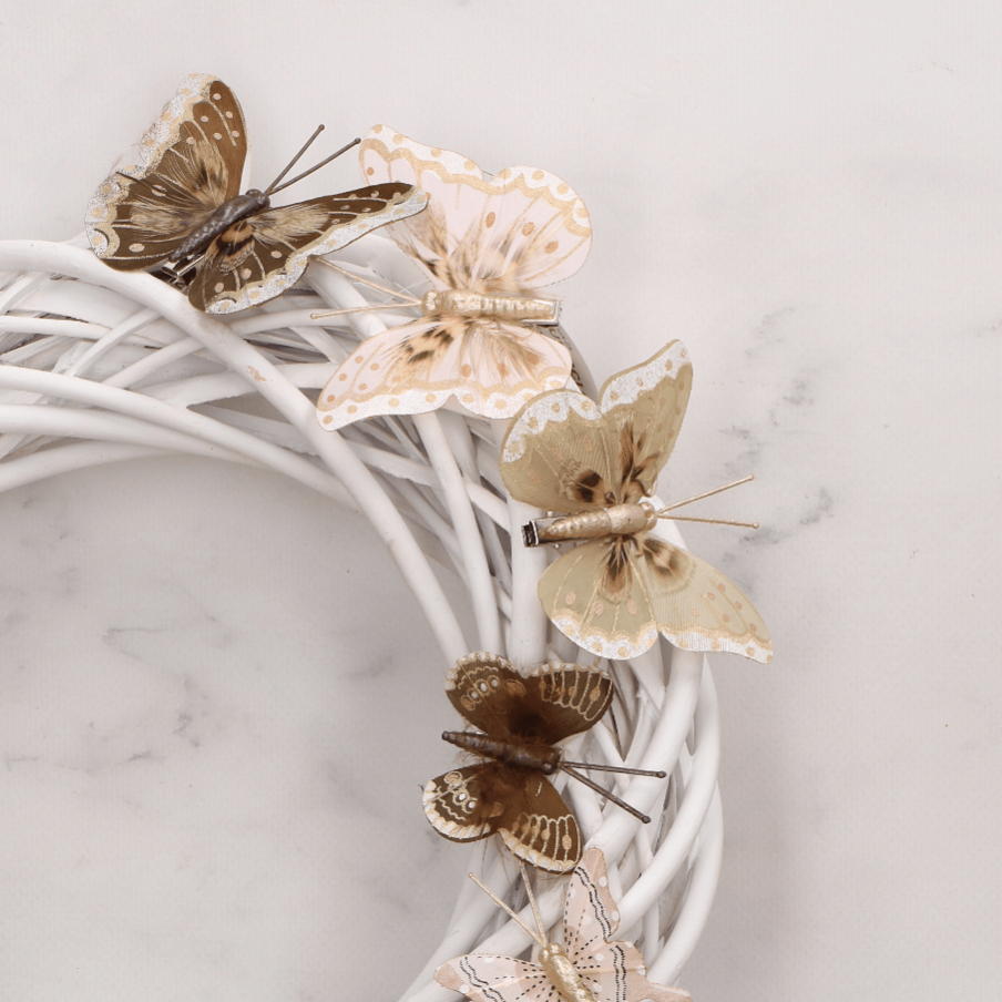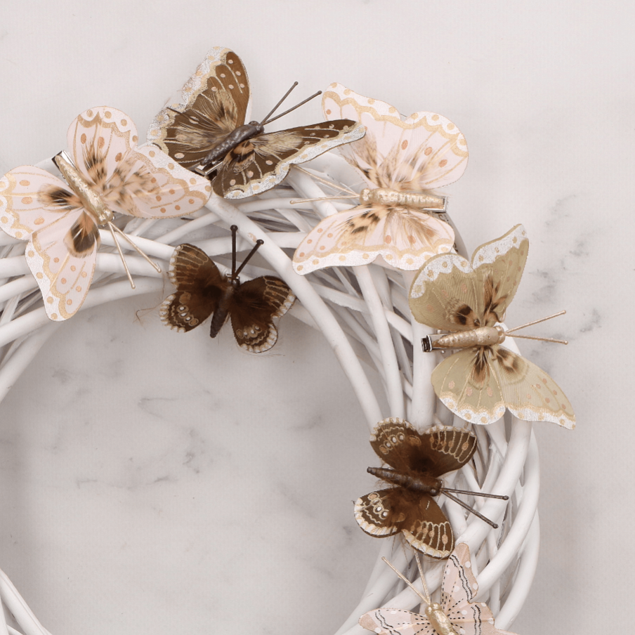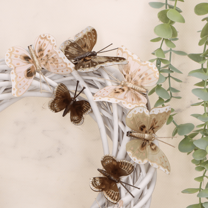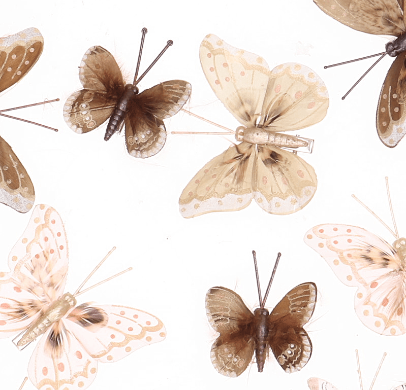 10 Piórkowych motyli klips brązowe 5+8 cm