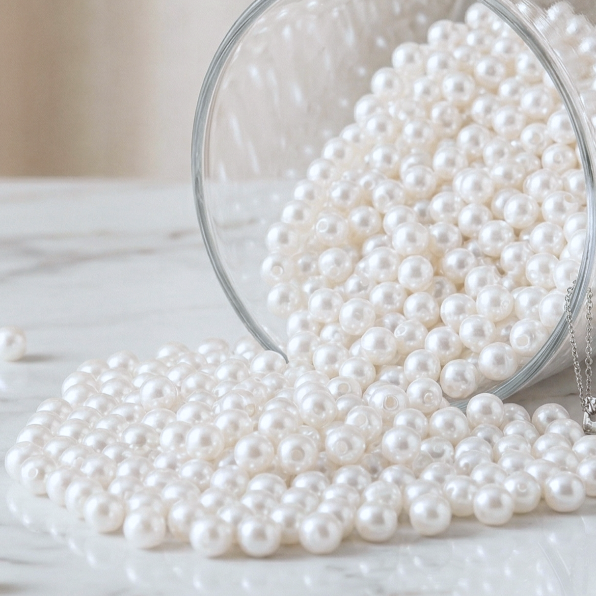 6mm Perły/ biały 50g/ opp - Materiał: Plastik