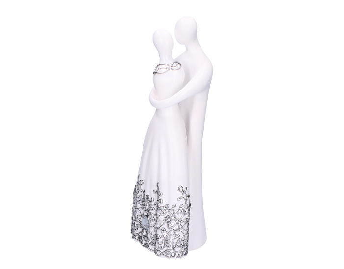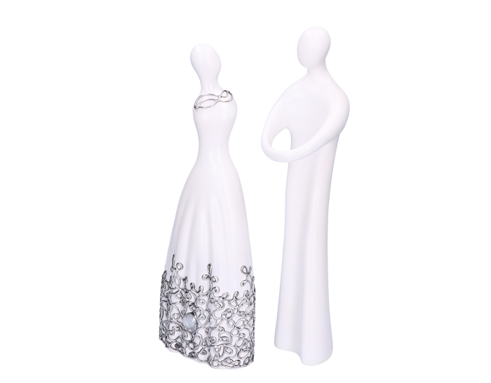 Ceramika jest wypalana dzięki czemu w swojej konsystencji pozostaje mocnym materiałem, trwałym i dość odpornym na stłumecznia w porównaniu do kreacji wyrzeźbionych z gipsu. Wykończenie produktu jest natomiast pokryte srebrnym zdobionym klejem.