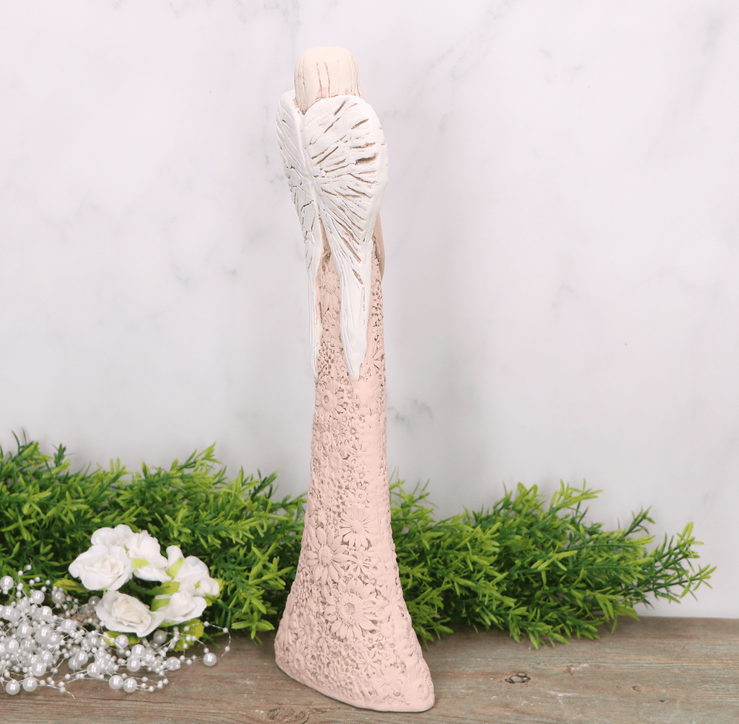 Anioł aniołek gipsowy kwiecista sukienka brzoskwiniowy 34cm