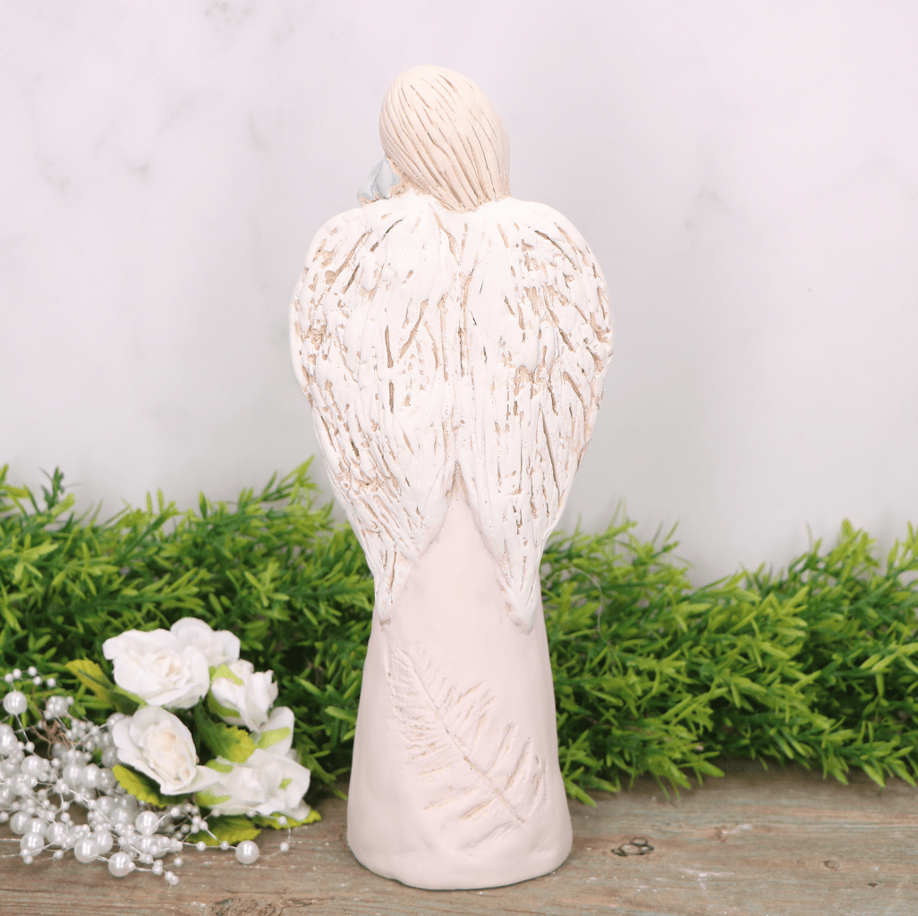 Anioł aniołek gipsowy "paprocie" róż 26,5cm
