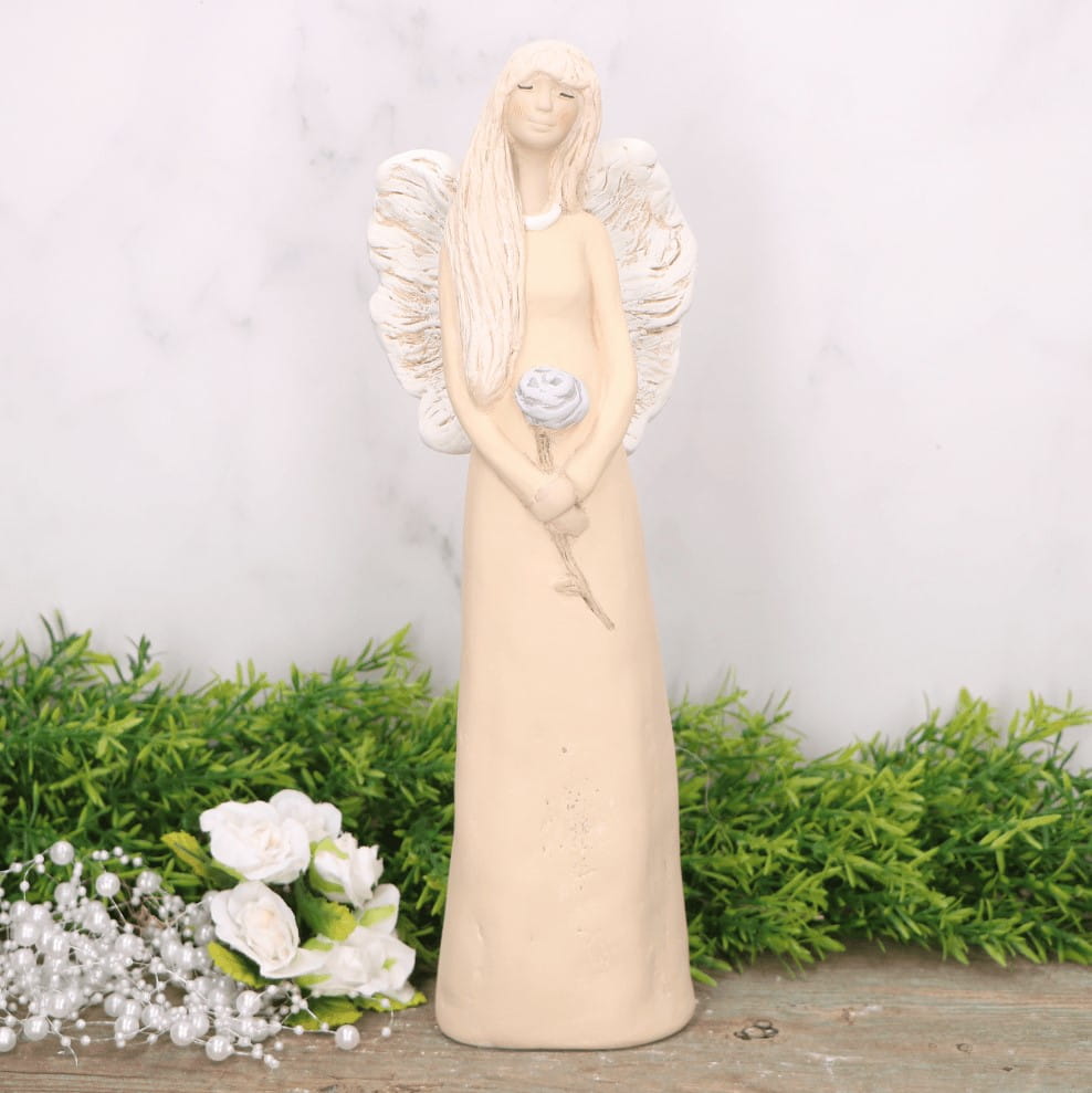 Anioł aniołek gipsowy z różą kremowy 31cm