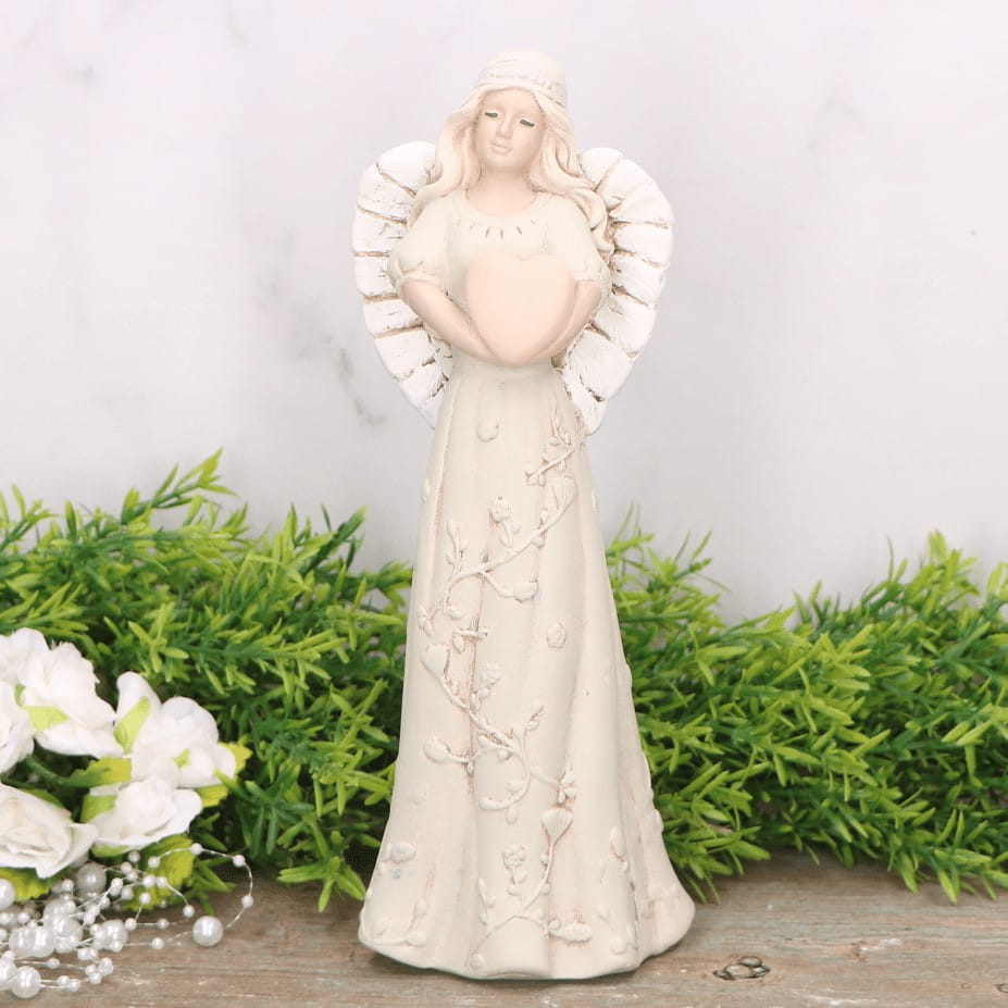 Anioł aniołek gipsowy z sercem kremowy 22cm