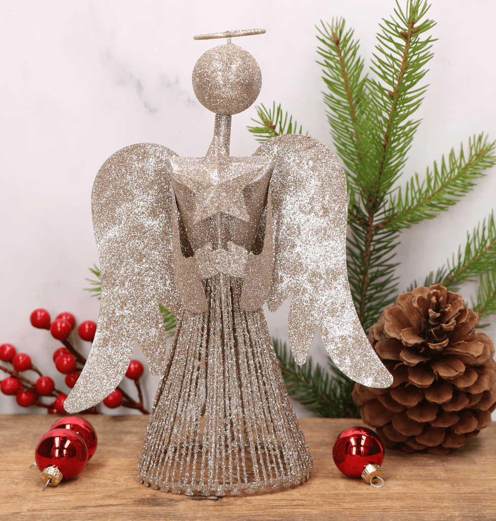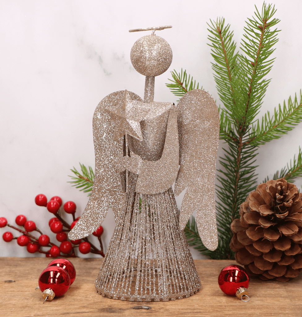 Piękny "trójwymiarowy" metalowy aniołek do postawienia. Idealnie nadaje pomieszczeniu świątecznego klimatu. Anioły dają człowiekowi spokój, nadzieję i poczucie bezpieczeństwa. Otaczamy się nimi, ponieważ chcemy znaleźć w nich sprzymierzeńców dających poczucie bezpieczeństwa. Szczególnie chętnie chronimy dzieci i inne bliskie nam osoby.