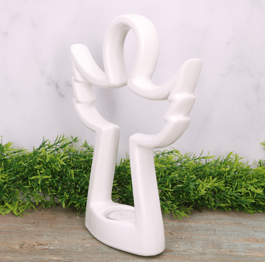 Anioł ceramiczny biały szkliwiony 16cm