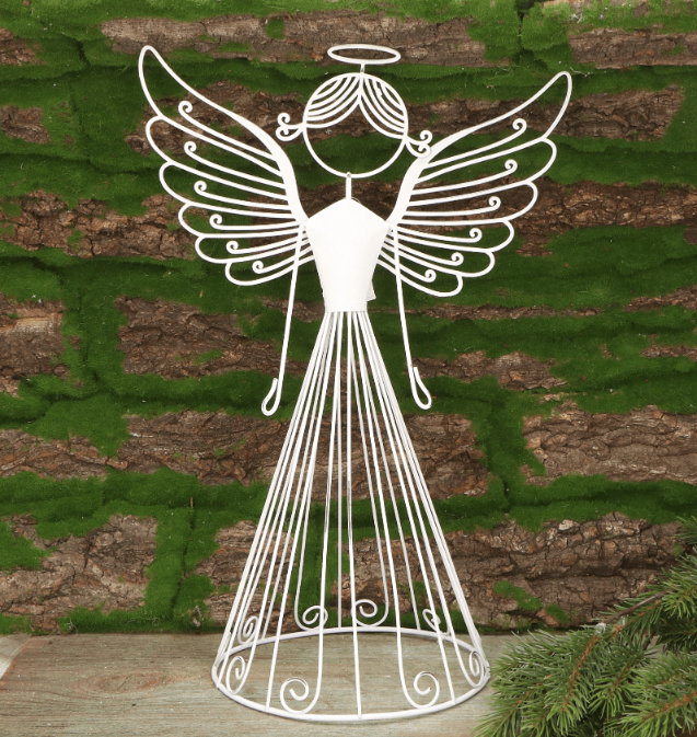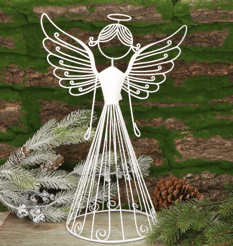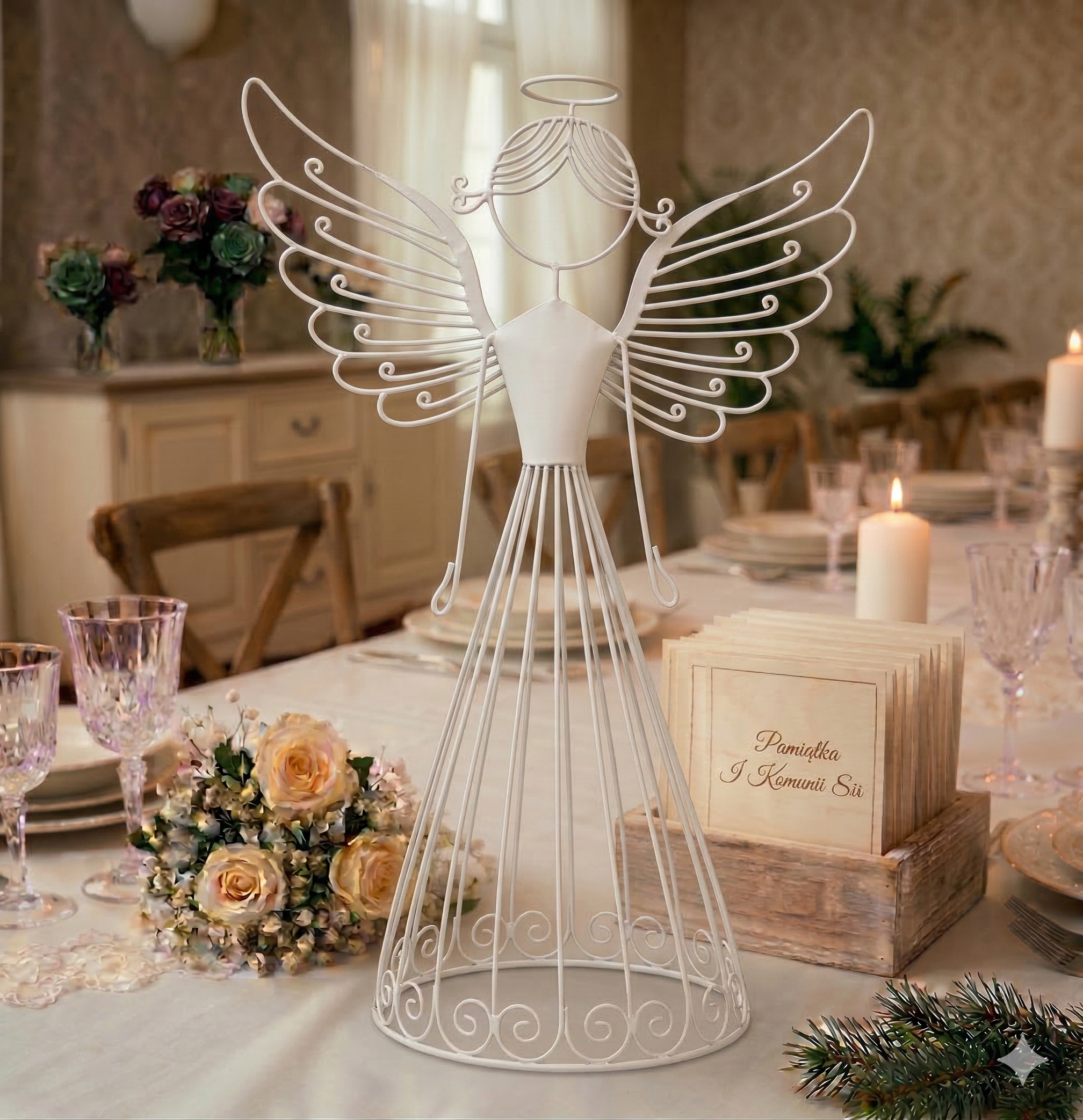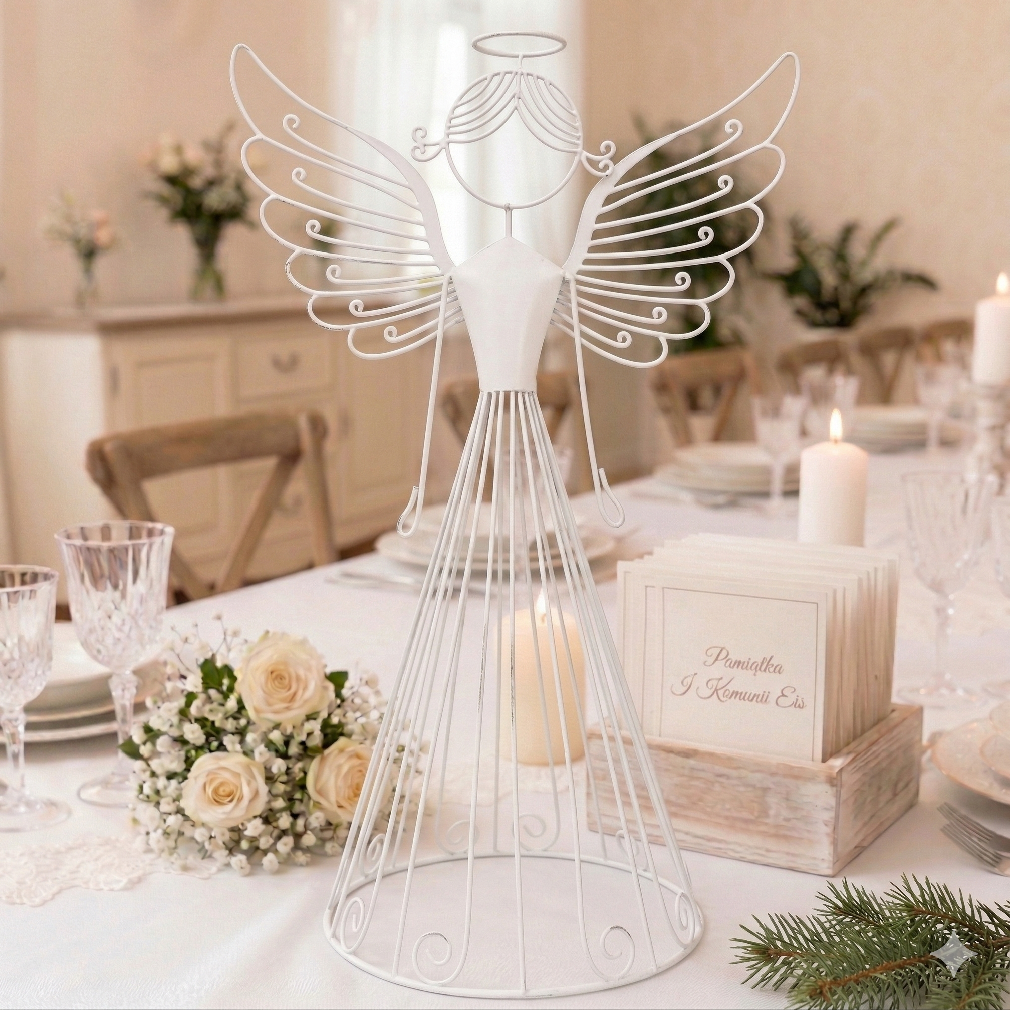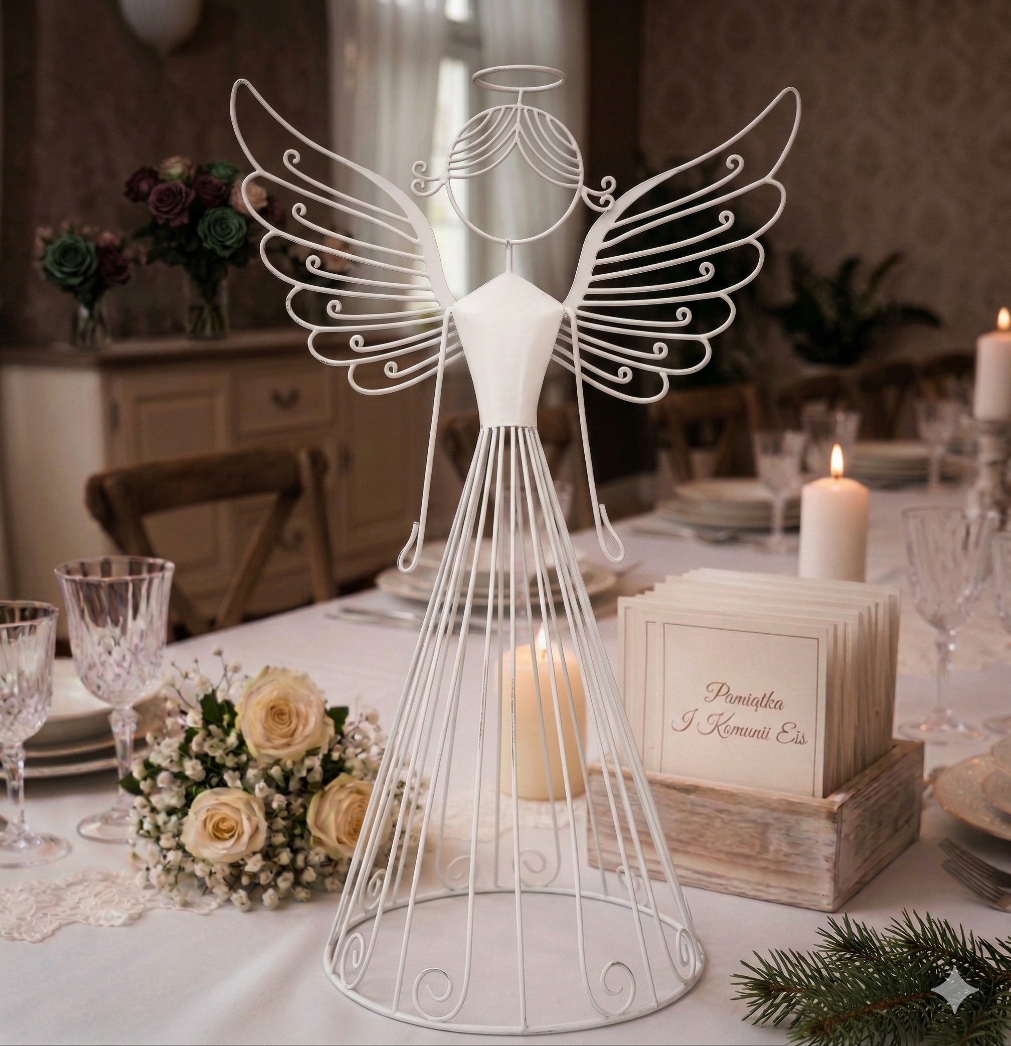 Anioł dekoracyjny z metalu – ozdoba Komunijna biała 28 cm