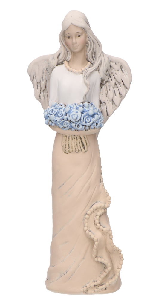 Anioł gipsowy brzoskwiniowy z bukietem 29 cm