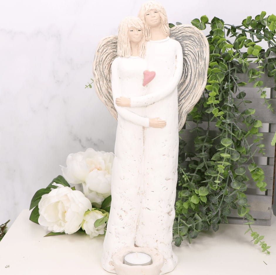 Anioł gipsowy ślubny para biały ze świeczką 41cm