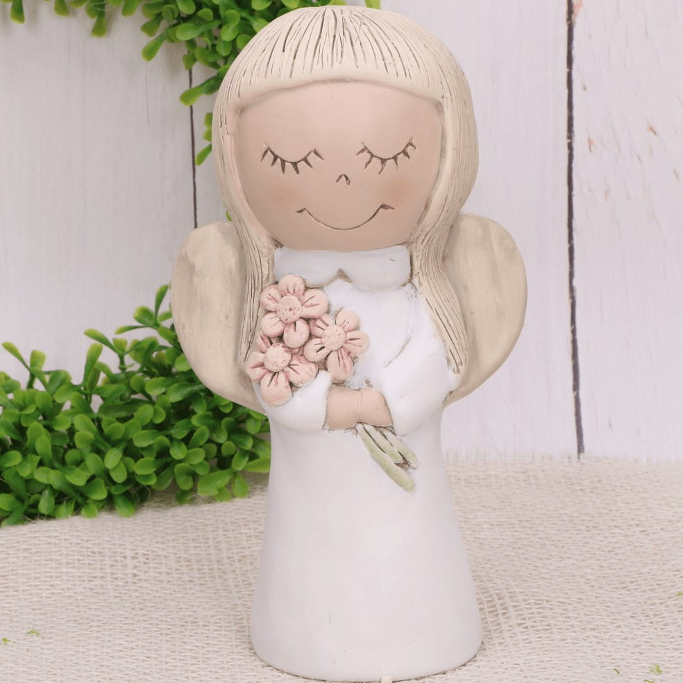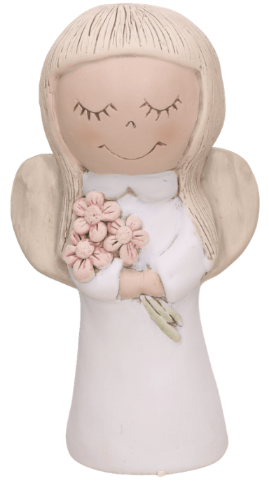 Anioł gipsowy z kwiatami biały 20cm MIX