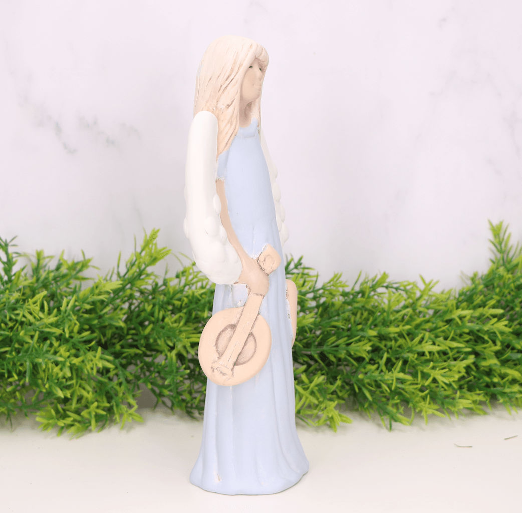 Anioł gipsowy z mandoliną niebieski 24cm