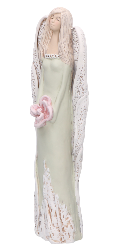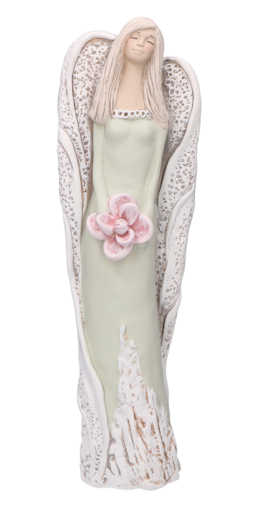Anioł gipsowy zielony z kwiatem duży 43 cm