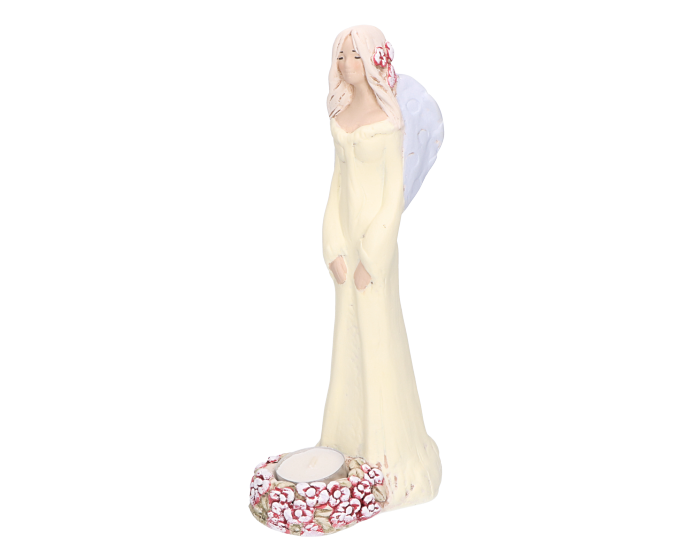 Anioł aniołek gipsowy "paprocie" krem 26,5cm