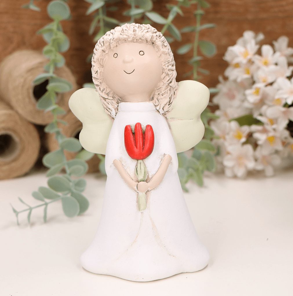 Aniołek dziewczynka z czerwonym tulipanem 16cm