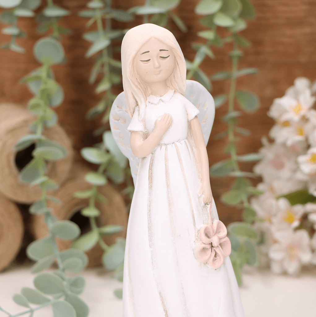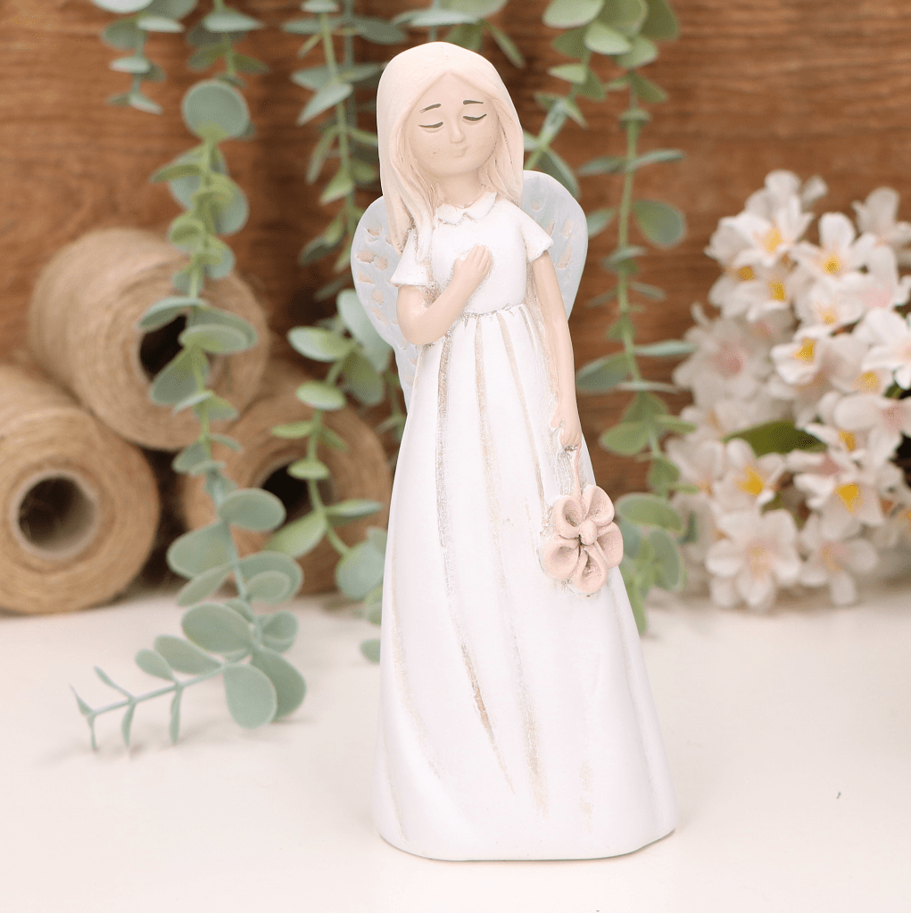 Aniołek dziewczynka z kwiatuszkiem 19cm biały