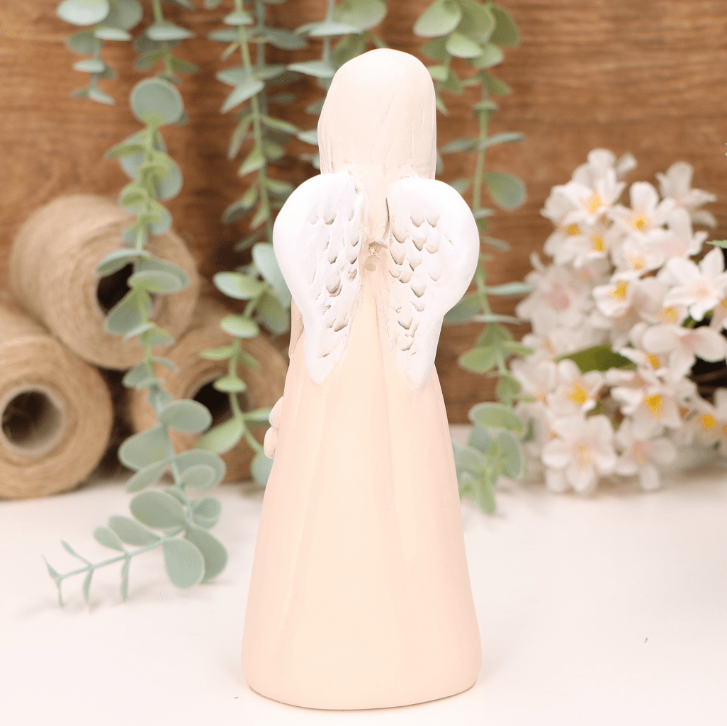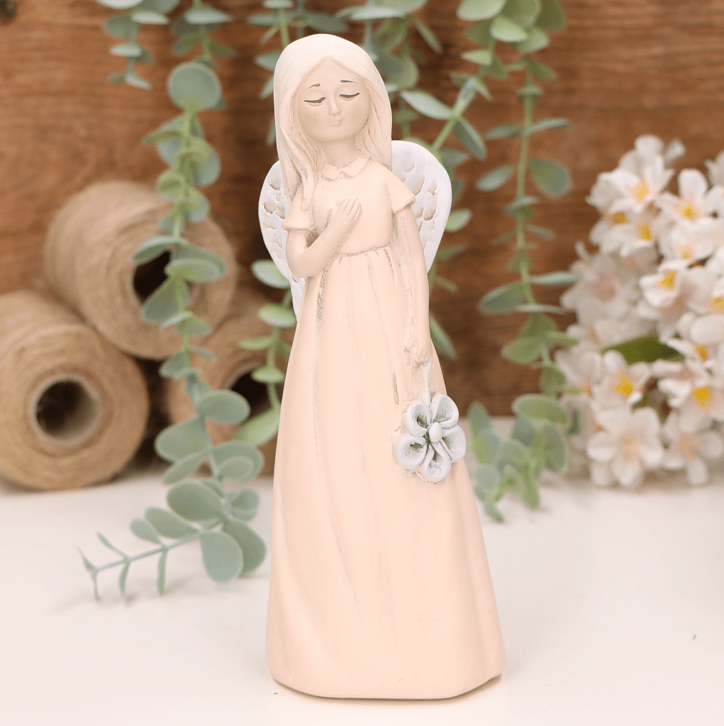 Aniołek dziewczynka z kwiatuszkiem 19cm brzoskwiniowy