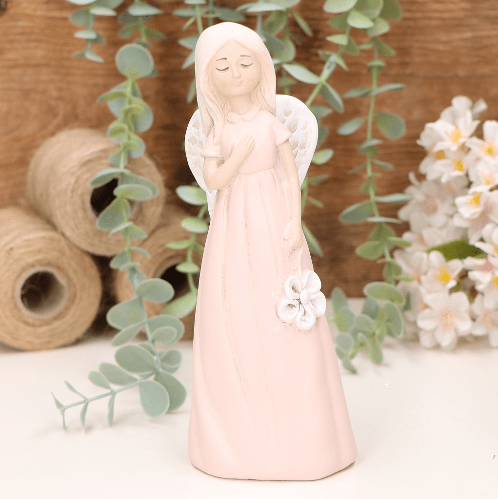 Aniołek dziewczynka z kwiatuszkiem 19cm różowy