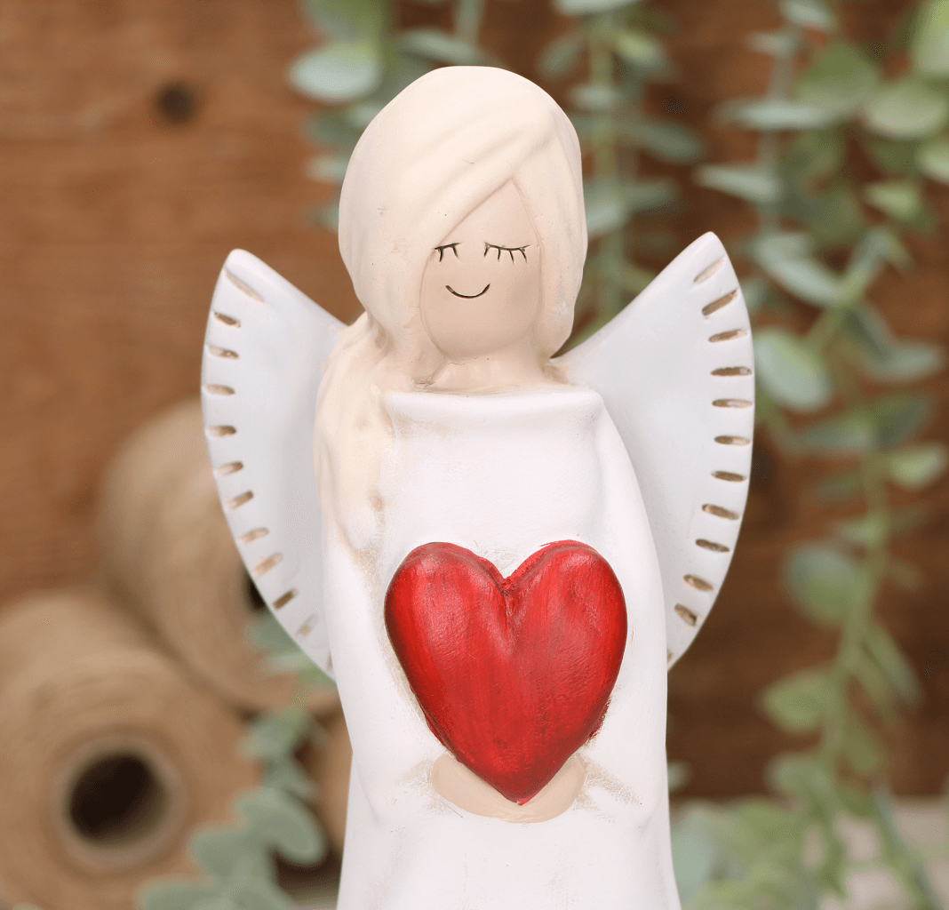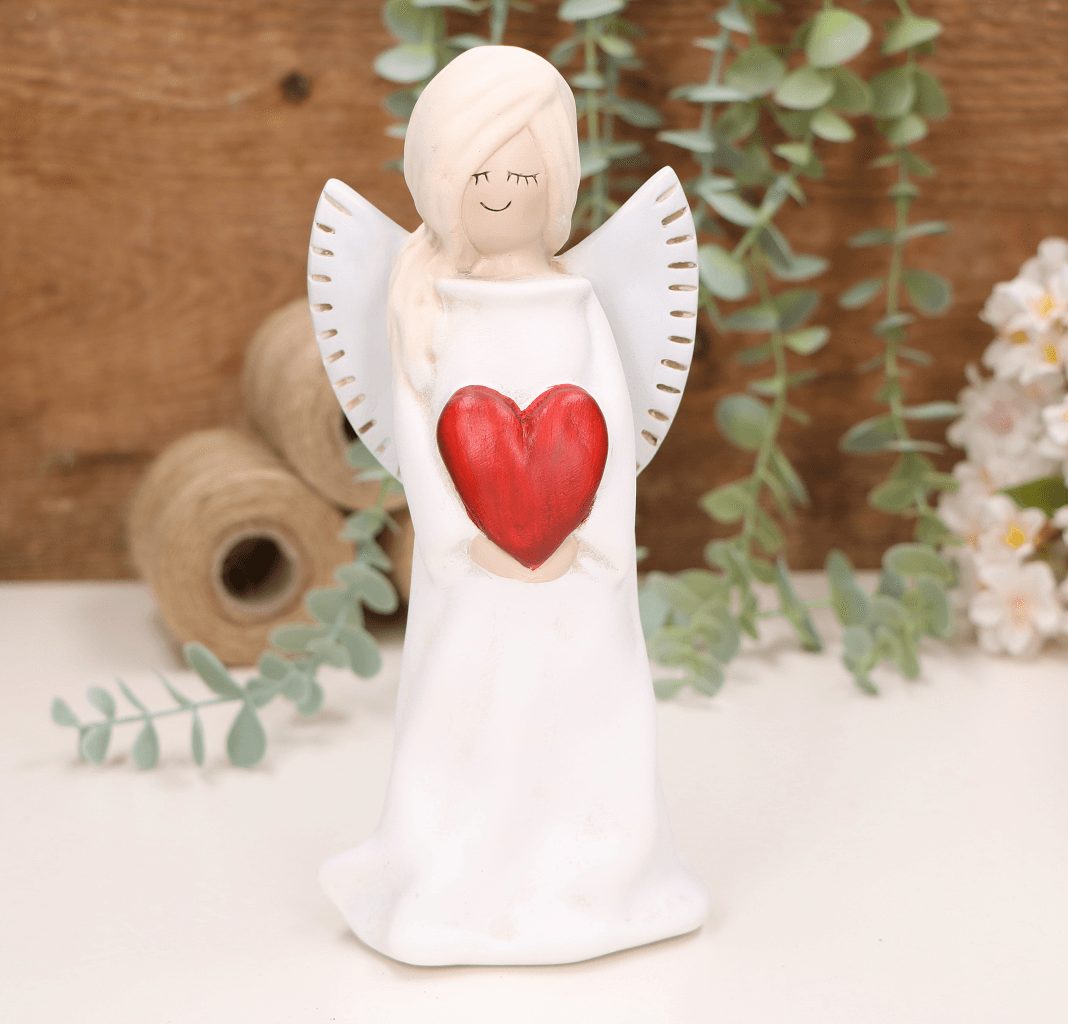 Aniołek dziewczynka z sercem 20cm biały czerwone serce
