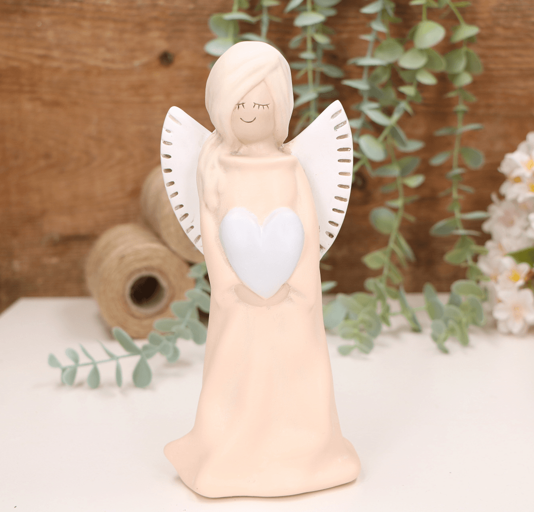 Aniołek dziewczynka z sercem 20cm biały różowe serce