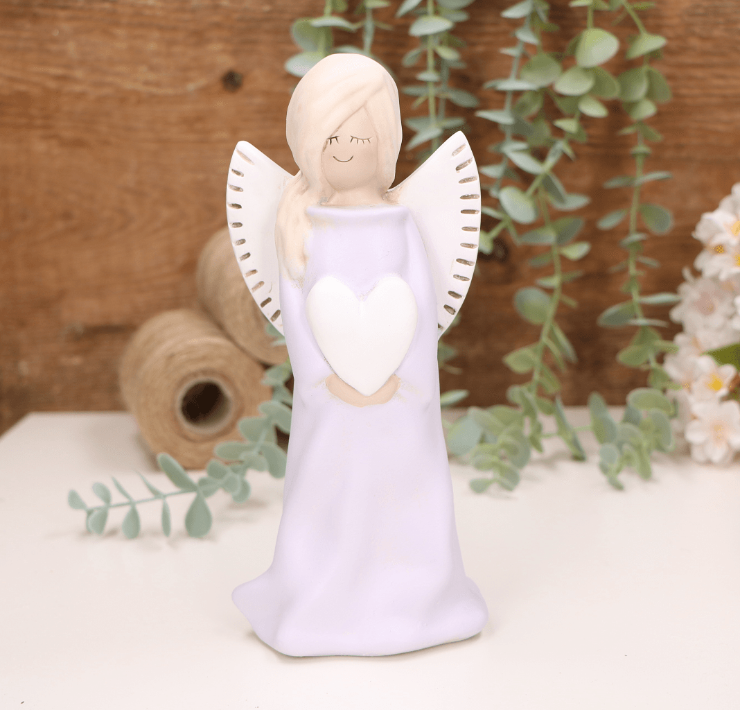 Aniołek dziewczynka z sercem 20cm fioletowy