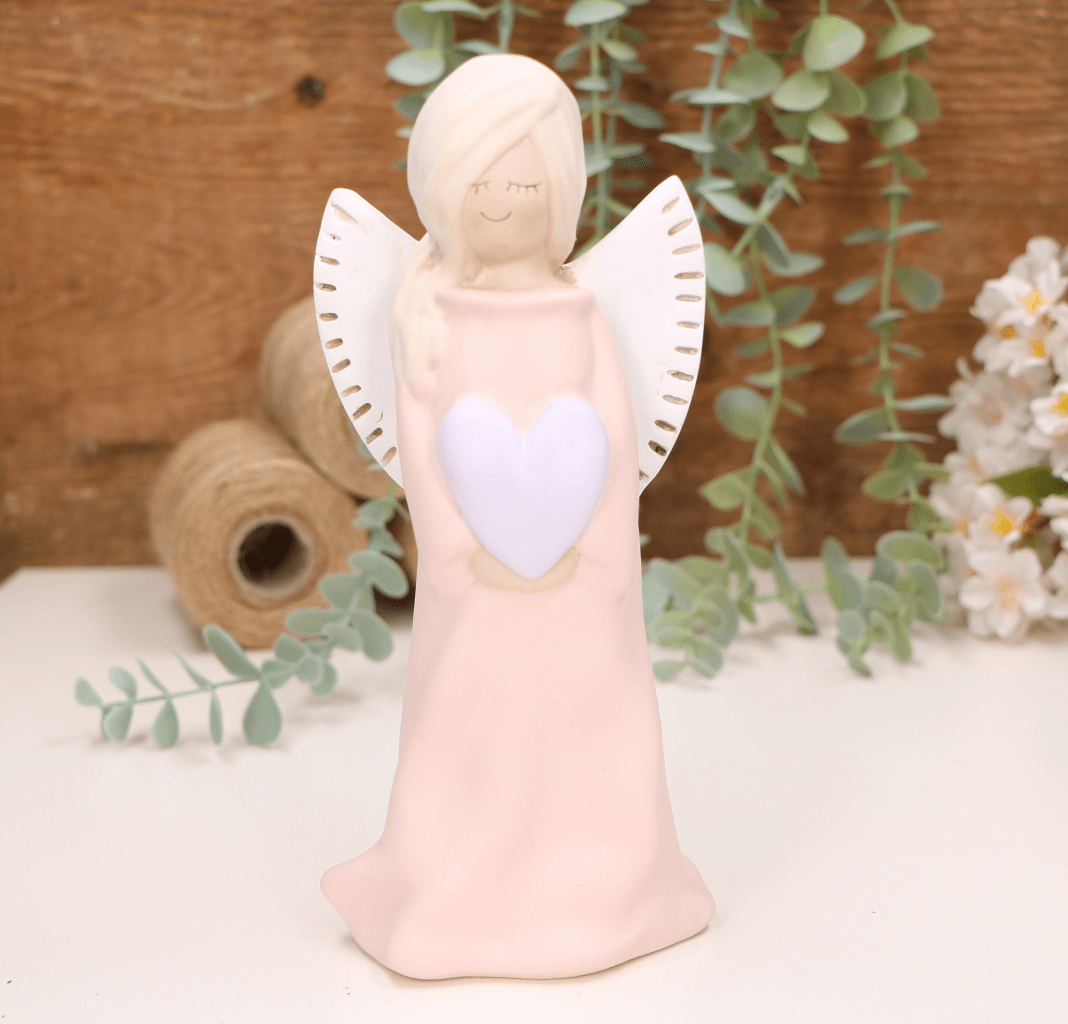 Aniołek dziewczynka z sercem 20cm różowy