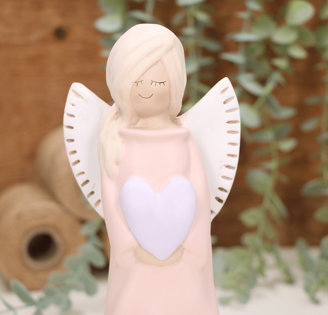 Aniołek dziewczynka z sercem 20cm biały różowe serce