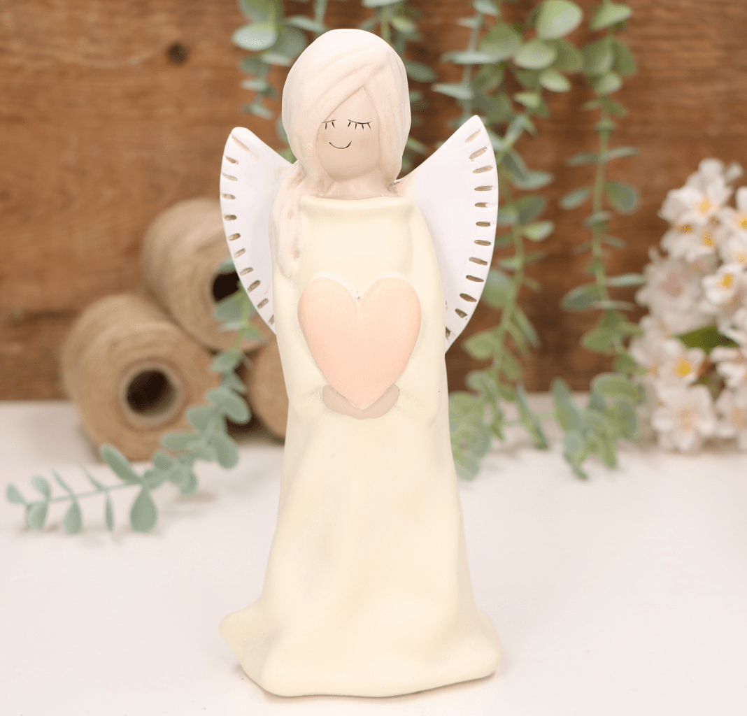Aniołek dziewczynka z sercem 20cm biały różowe serce