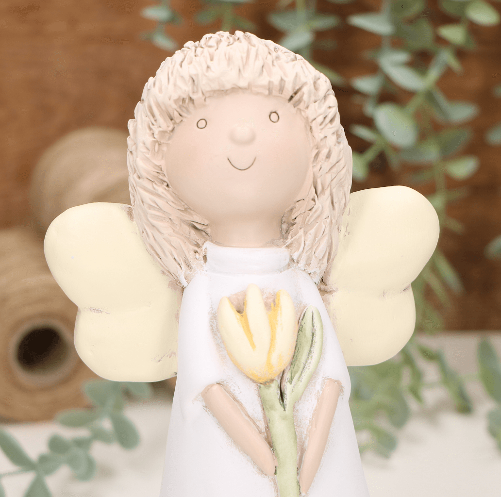 Aniołek dziewczynka z żółtym tulipanem 21cm