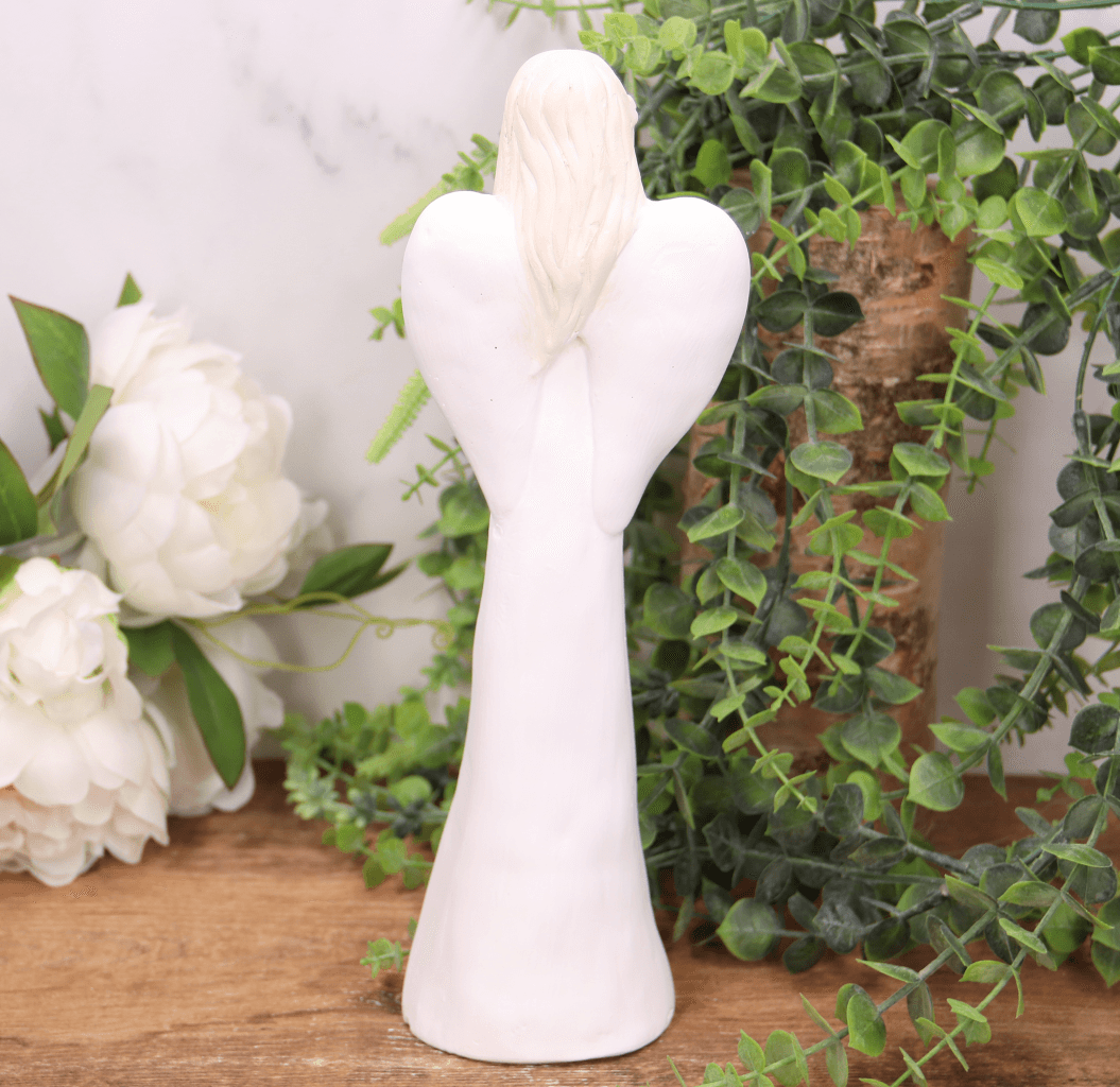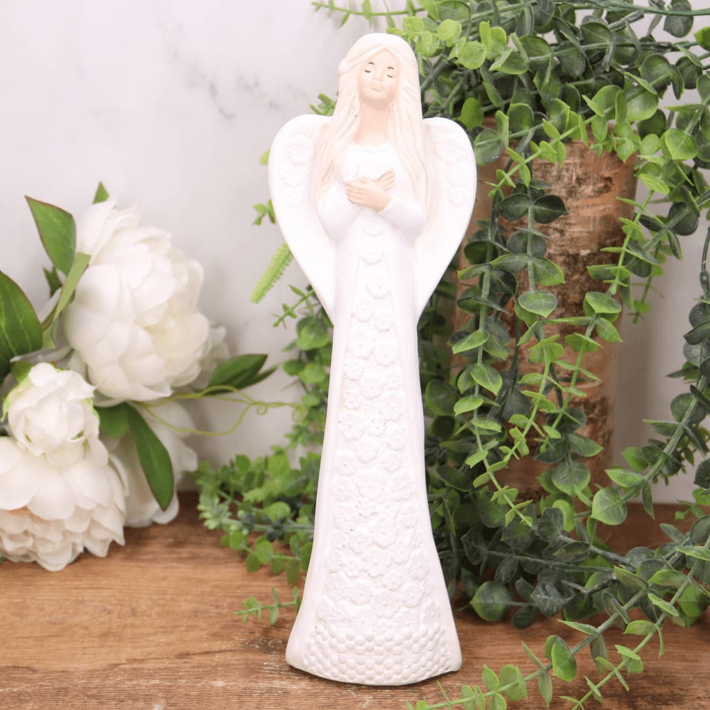 Aniołek gipsowy "FELICJA" w sukni z kwiatami 30cm biały