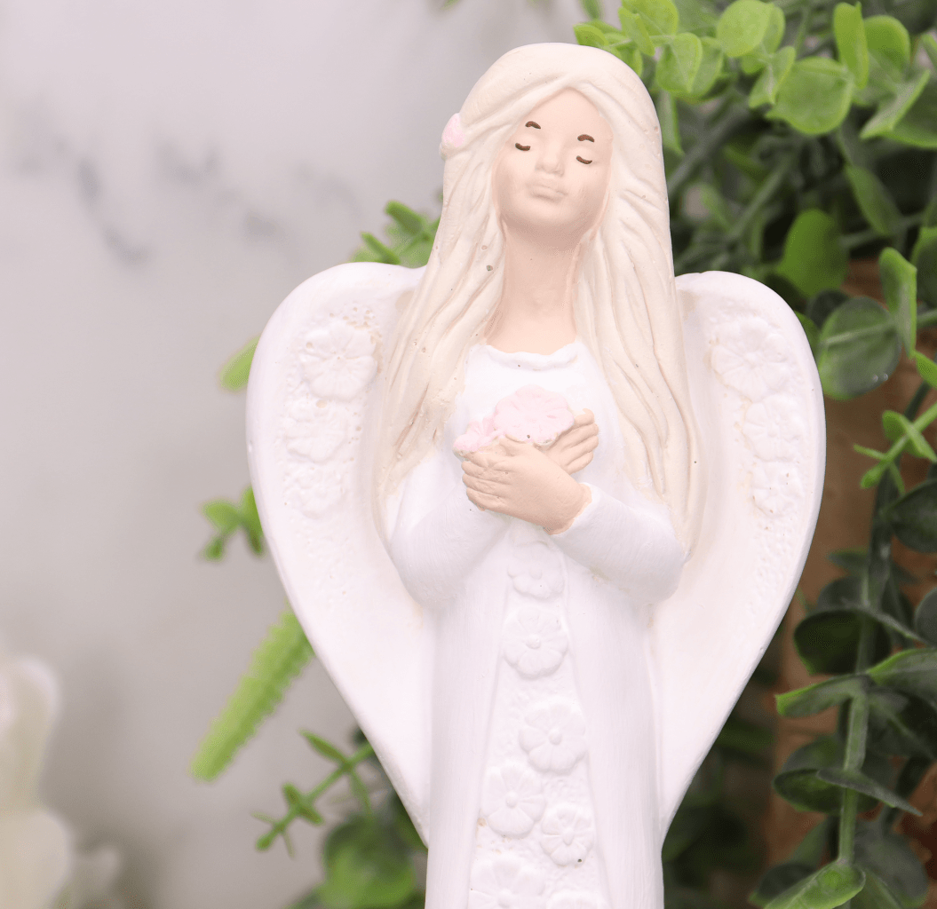 Aniołek gipsowy "FELICJA" w sukni z kwiatami 30cm biały perłowy