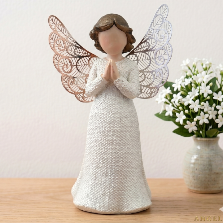 Aniołek modlący się z metalowymi ażurowymi skrzydełkami 12x6,5cm KOMUNIA