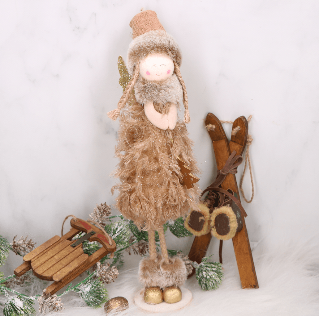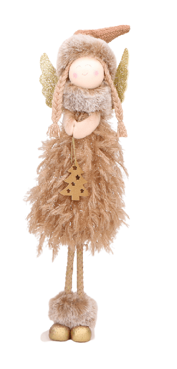 Aniołek pluszowy brązowy w pierzastej sukience 36cm