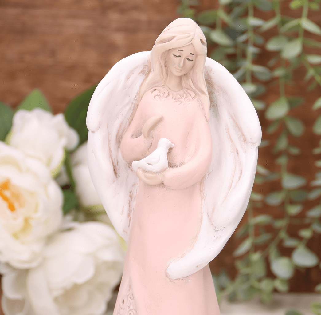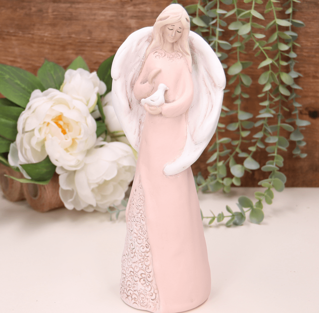 Aniołek ślubny z gołąbkiem różowy 26cm