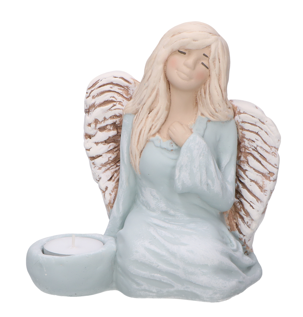 Aniołek świecznik niebieski 18 cm