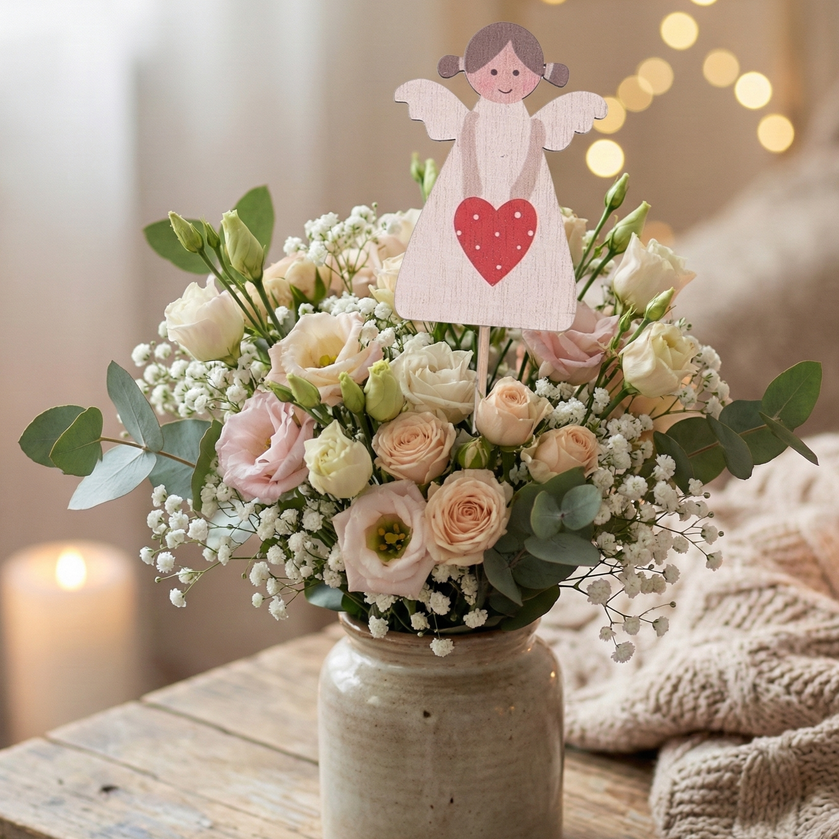 Te urocze aniołki na piku to idealna dekoracja świąteczna. Słodki i kolorowy design sprawi, że Twoje wnętrza nabiorą wyjątkowego uroku i magii. Piki świetnie nadają się do ozdabiania doniczek, stroików, bukietów kwiatowych oraz innych świątecznych aranżacji. Naturalne drewno i staranność wykonania zapewniają trwałość i estetyczny wygląd. To doskonały wybór dla osób, które pragną dodać swoim dekoracjom świątecznym odrobinę radości i ciepła.