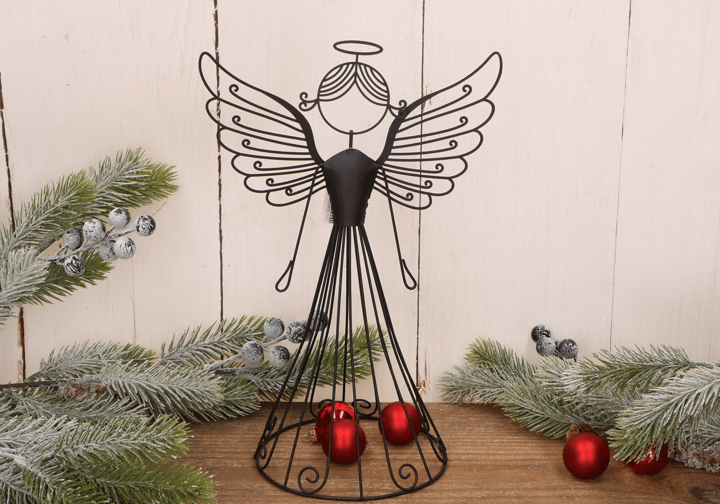 Stylowy aniołek z metalu w kolorze czarnym to elegancka dekoracja, która sprawdzi się zarówno w świątecznych, jak i całorocznych aranżacjach wnętrz. Jego ażurowa forma z finezyjnie wygiętymi skrzydłami i delikatnym konturem nadaje całości lekkości oraz artystycznego charakteru. Wykonany z trwałego metalu, aniołek pięknie prezentuje się na komodzie, parapecie, czy jako element bożonarodzeniowej kompozycji. Minimalistyczny design sprawia, że pasuje do wnętrz nowoczesnych, klasycznych, a nawet industrialnych. To również świetny pomysł na symboliczny prezent pełen uroku i emocji.