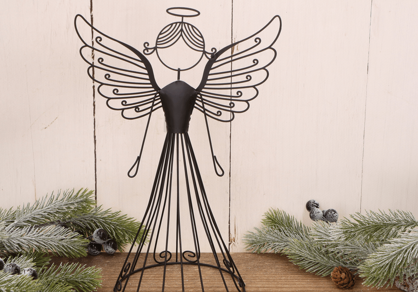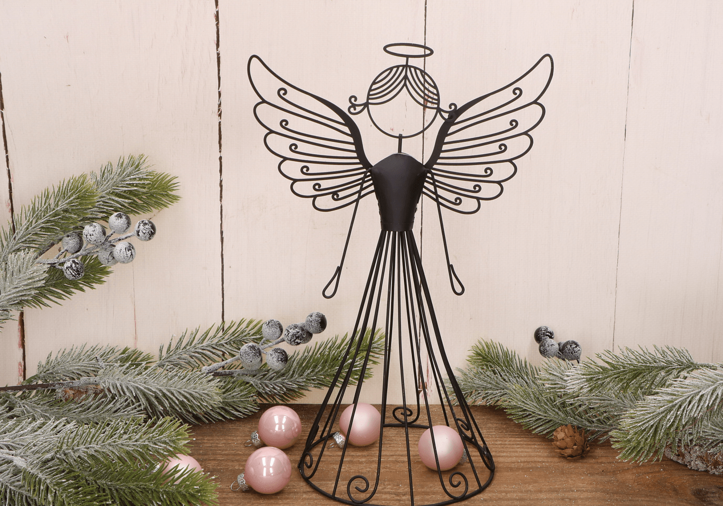 Ażurowy metalowy anioł dekoracyjny – czarny
