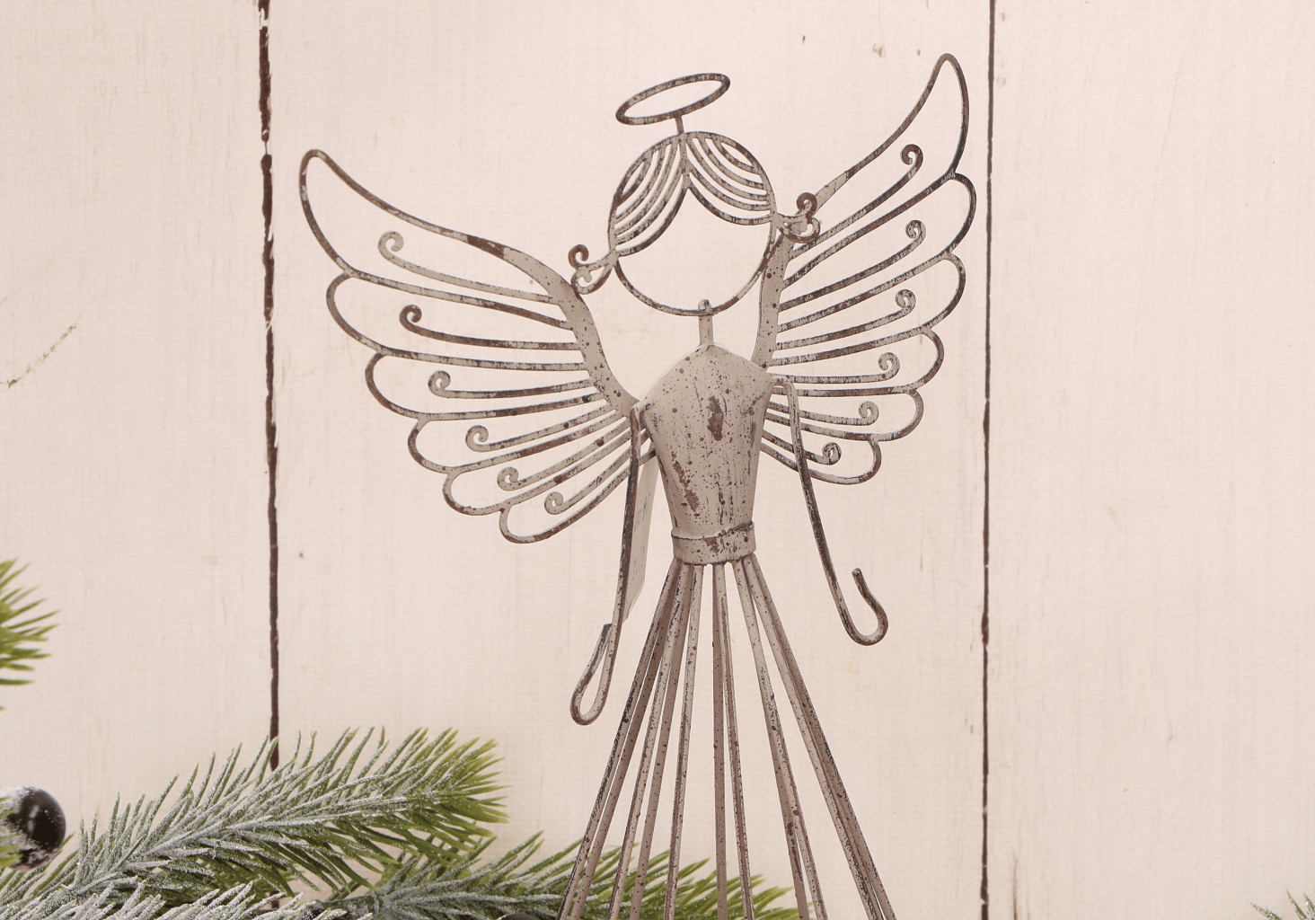 Ażurowy metalowy anioł dekoracyjny – kremowy