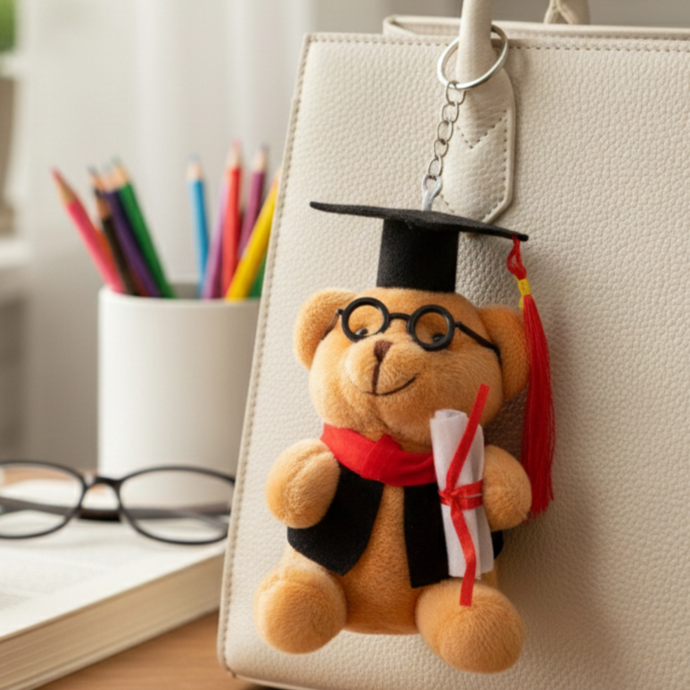 Uroczy brelok do kluczy w kształcie misia 10 cm to stylowy i oryginalny dodatek do kluczy, torebki lub plecaka. Pluszowy miś w odcieniu coffee ubrany jest w elegancki strój z kapeluszem, co nadaje mu wyjątkowego charakteru. Starannie wykonane detale sprawiają, że breloczek prezentuje się estetycznie i przyciąga uwagę. Dzięki praktycznemu zapięciu można go łatwo przypiąć do kluczy, torby czy saszetki. To doskonały gadżet dekoracyjny oraz świetny pomysł na drobny upominek. Pluszowy brelok miś łączy funkcjonalność z modnym wyglądem, dodając codziennym akcesoriom uroku.