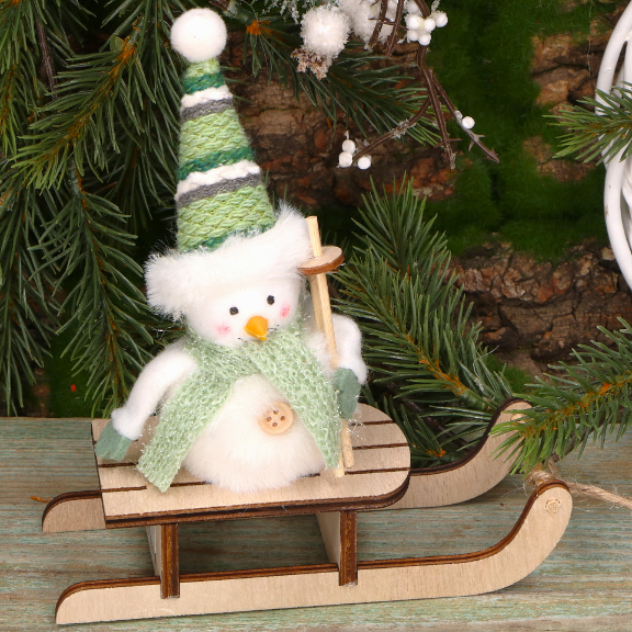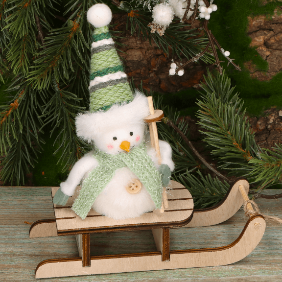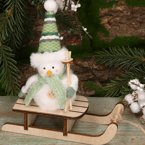 Bałwanek na sankach w zimowym ubranku 15 cm