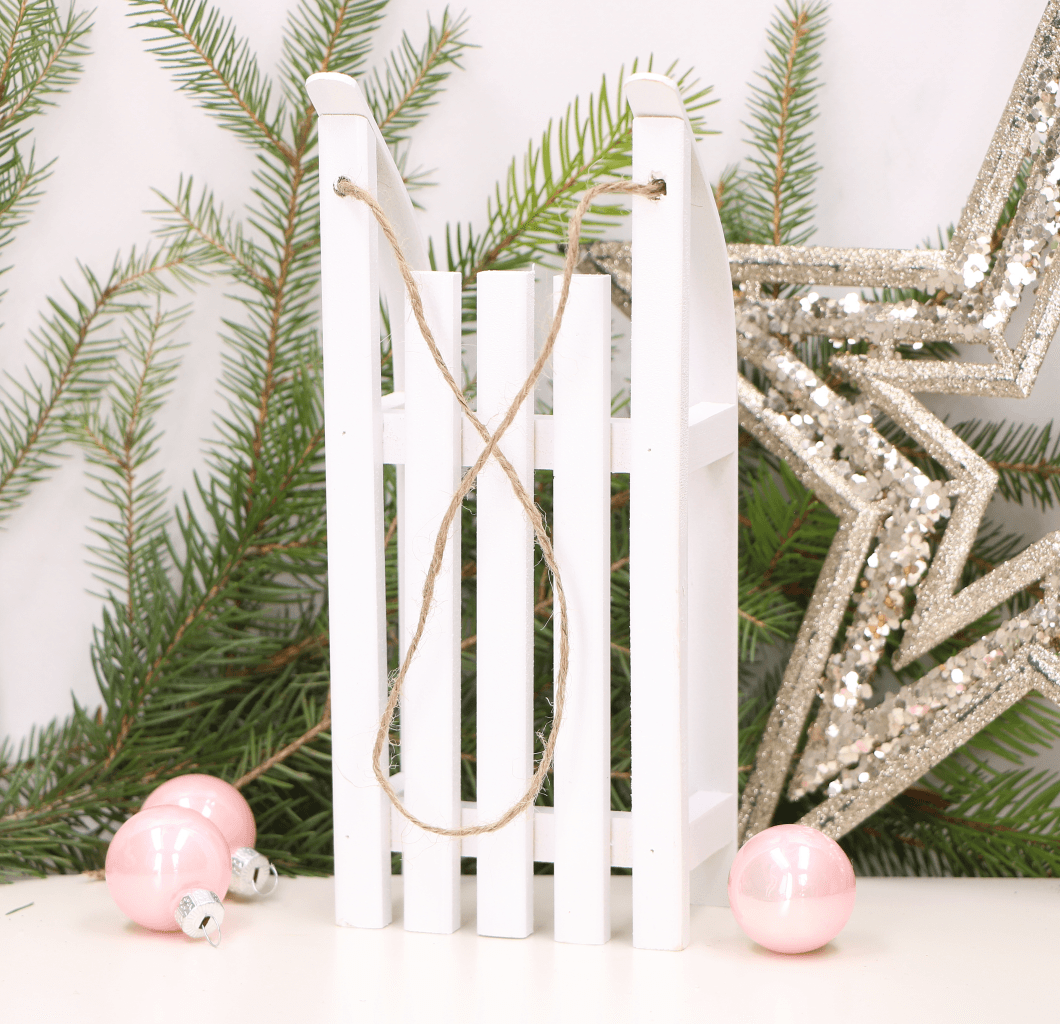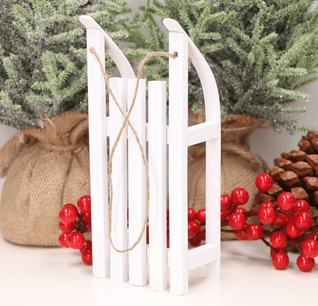 Białe sanki drewniane ze sznureczkiem 20cm