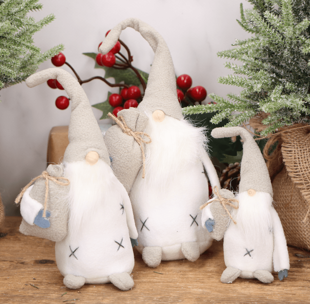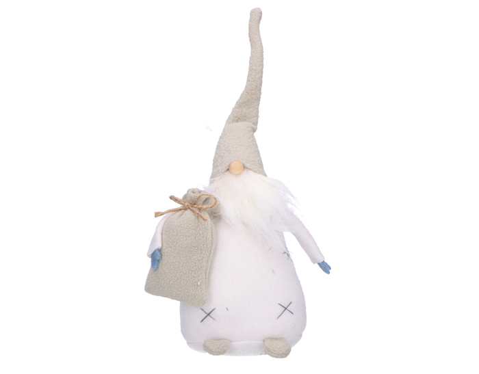 Nierozłącznym elementem Świąt Bożego Narodzenia są dekoracje świąteczne, które stwarzają w naszych domach magiczną atmosferę bożonarodzeniową. Ciekawym pomysłem na tegoroczny wystrój świąteczny, jest skrzat ubrany w uroczą czapeczkę w odcieniach beżu, trzymający worek prezentów.