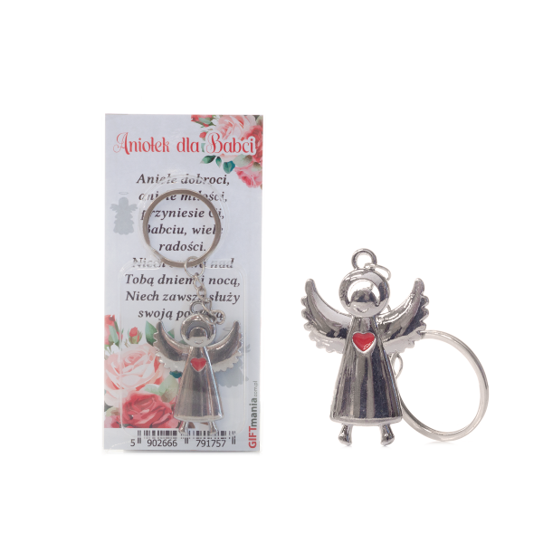 Breloczek do kluczy w ozdobnym opakowaniu - aniołek z serduszkiem "Aniołek dla Babci"