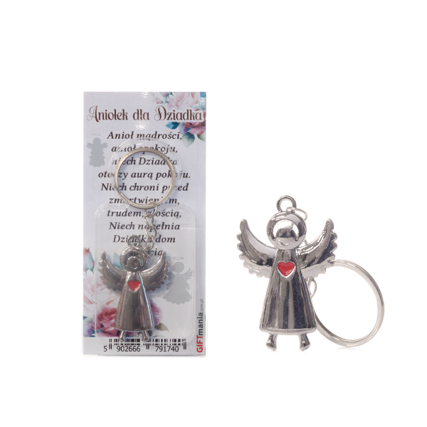 Breloczek do kluczy – Aniołek z serduszkiem „Aniołek dla Dziadka” w ozdobnym opakowaniu 7.5 x 4 cm