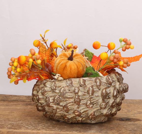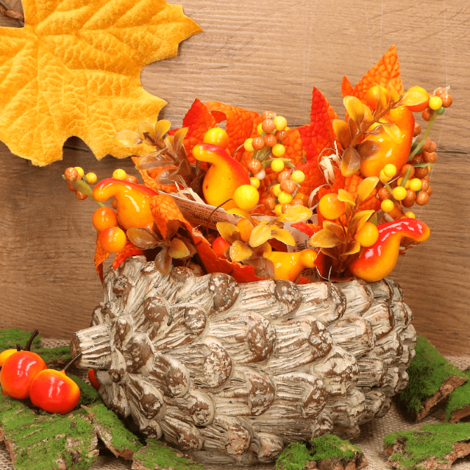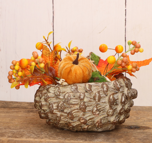 Cementowa doniczka w kształcie szyszki naturalna 20,5x16x11 cm