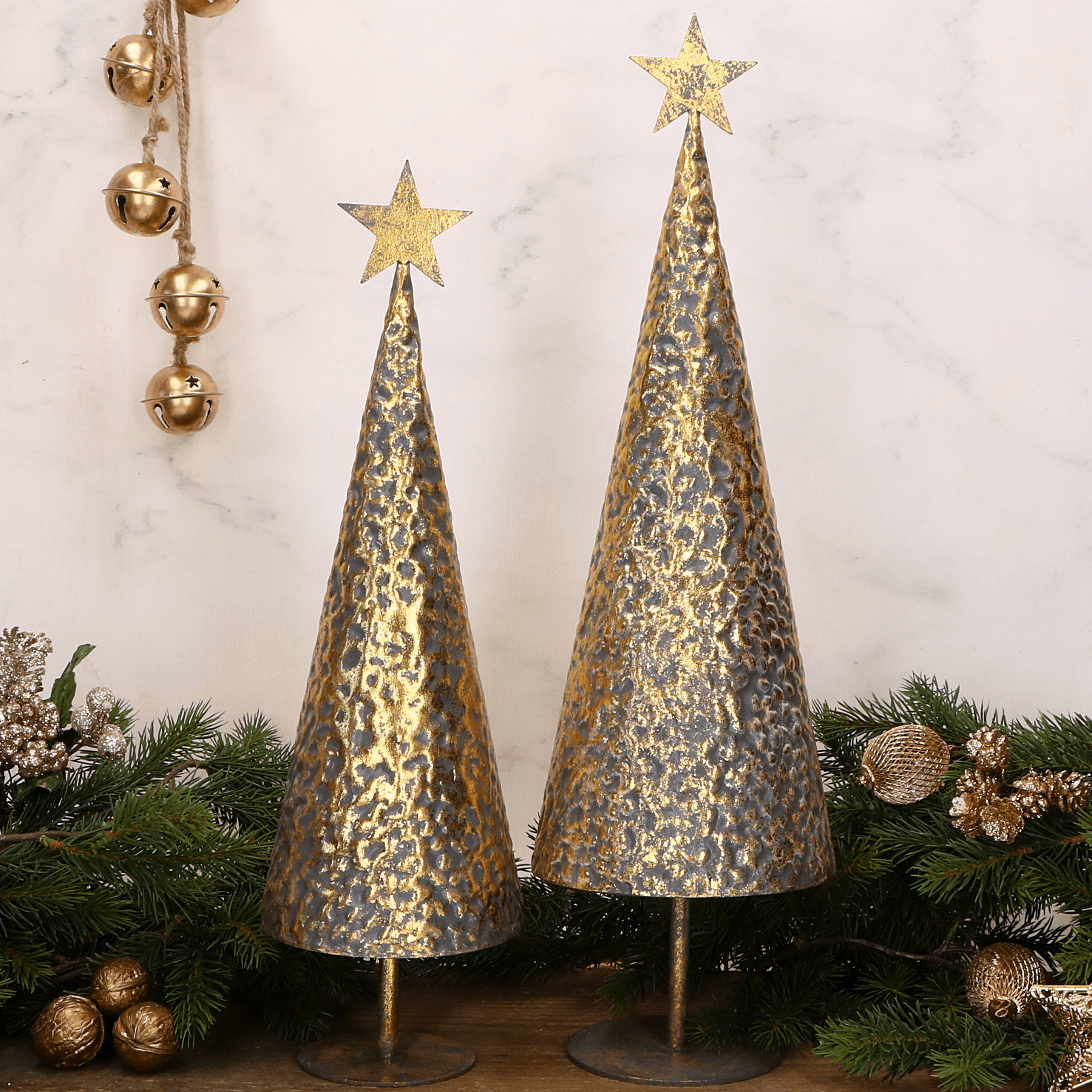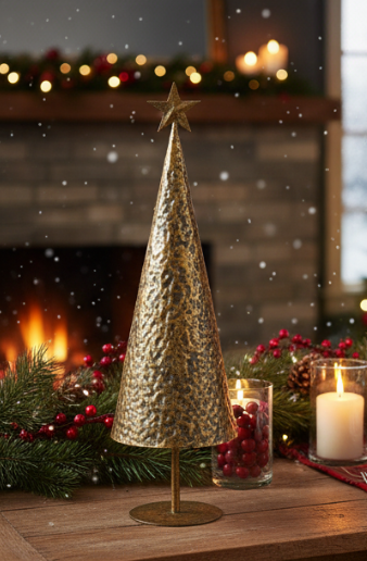 Choinka świąteczna złota metalowa 48 cm dekoracja bożonarodzeniowa