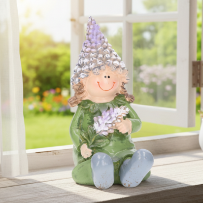 Urocza ceramiczna figurka dziewczynki to wyjątkowa dekoracja, która wprowadzi do wnętrza ciepły, wiosenny klimat. Postać w zielonej sukience, z bukietem delikatnych kwiatów i charakterystyczną czapką w kształcie hiacyntu, zachwyca starannym wykonaniem oraz subtelną kolorystyką. To idealna dekoracja wiosenna do domu, która pięknie zaprezentuje się na komodzie, półce, parapecie czy wśród świątecznych stroików wielkanocnych. Dzięki kompaktowym wymiarom figurka doskonale sprawdzi się zarówno jako samodzielna ozdoba, jak i element większej aranżacji. To także świetny pomysł na drobny upominek dla miłośników klimatycznych, ceramicznych dodatków do wnętrz.