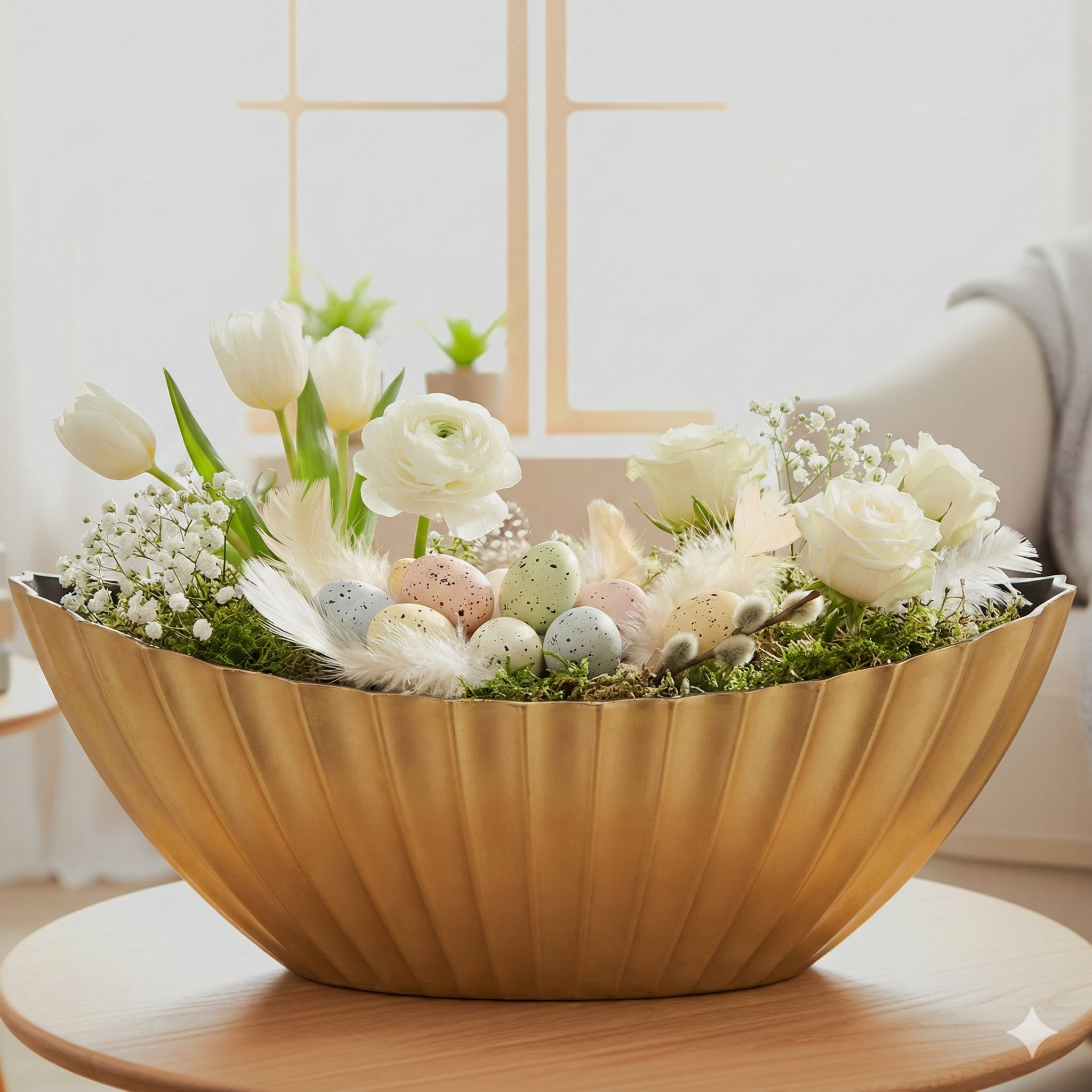 Elegancka doniczka/osłonka w złotym kolorze to doskonałe rozwiązanie do każdego wnętrza. Nowoczesny design z ryflowaną powierzchnią dodaje jej elegancji i stylu. Wykonana z wysokiej jakości plastiku, jest lekka, trwała i odporna na uszkodzenia. Idealna do umieszczenia zarówno na parapecie, stole, jak i półce, nadaje się do różnych rodzajów roślin. Zewnętrzna złota powierzchnia wspaniale kontrastuje z ciemnym wnętrzem, co dodatkowo podkreśla piękno rośliny.
