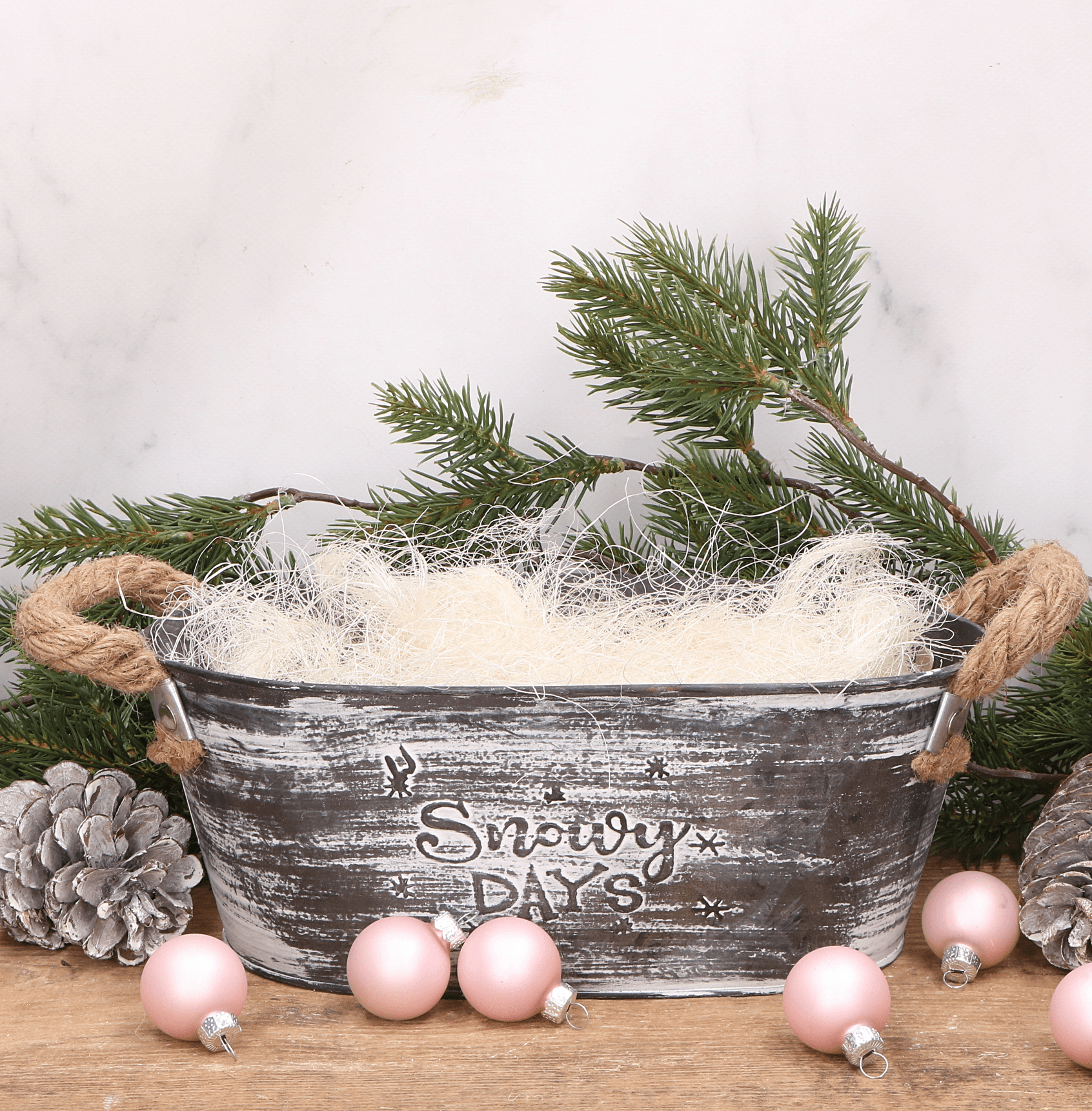 Doniczka metalowa osłonka z uchwytami zimowa świąteczna 9,5x20,5cm