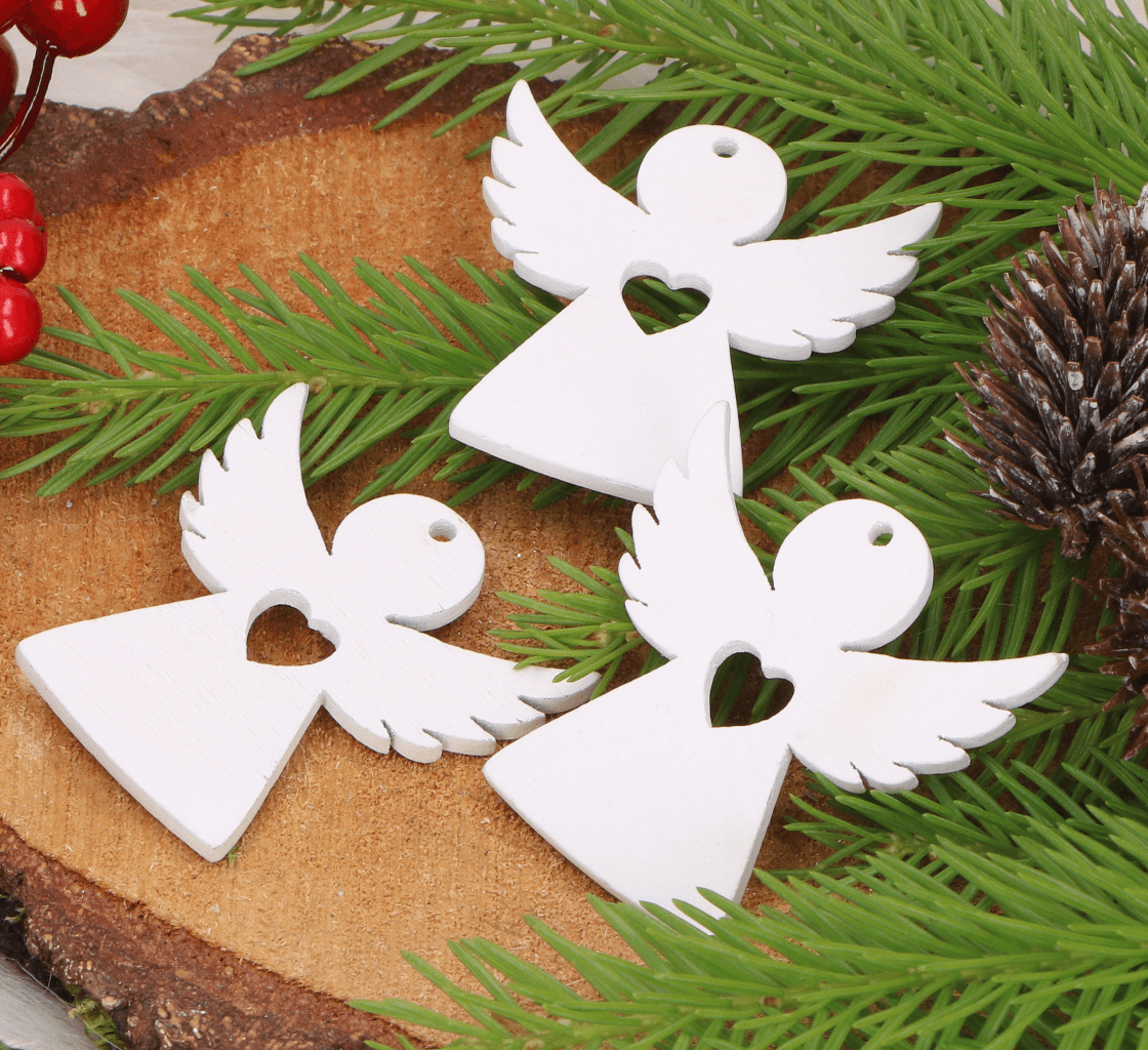 Drewniany aniołek biały 5cm 12 szt