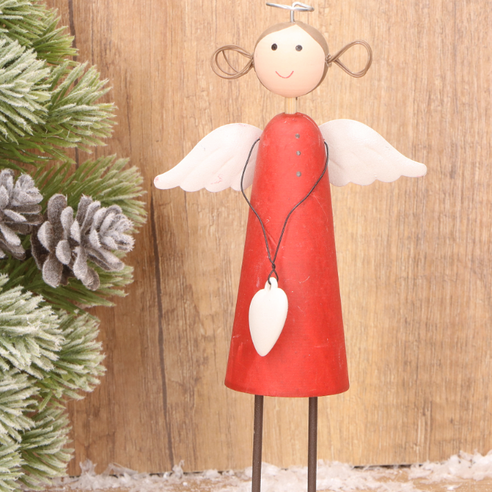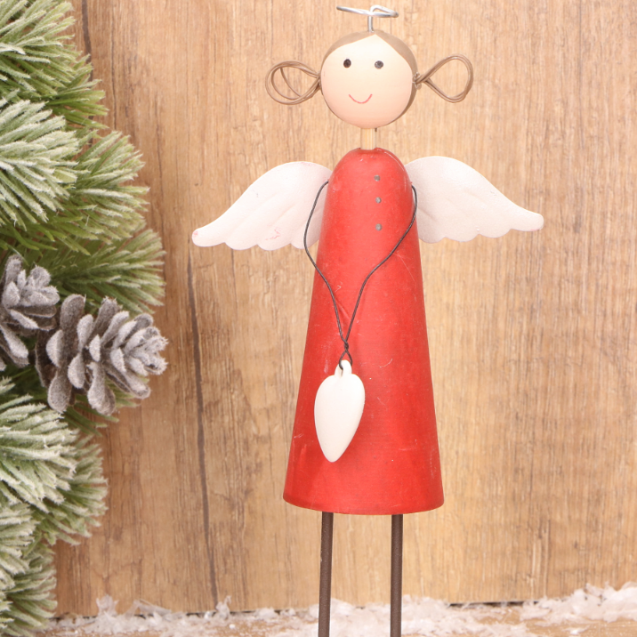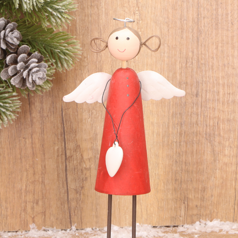 Drewniany aniołek dekoracyjny w czerwonej sukience